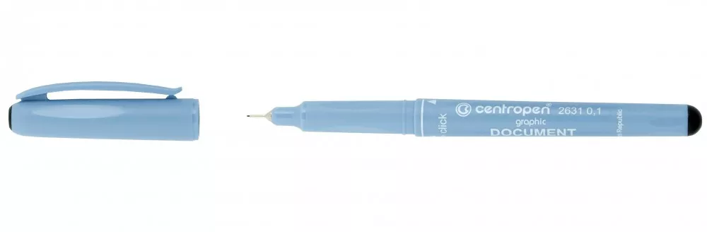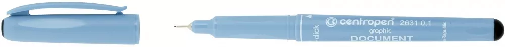 Liner Centropen 2631 černý 0,1. Dokumentní liner, ergonomické držení, světlostálý a vodě odolný inkoust, vhodný pro kopírování. Zvlášť vhodný k vytahování, skicování, technickému kreslení. Šířka stopy 0,1 = cca 0,25mm. Délka stopy 500 až 600m.