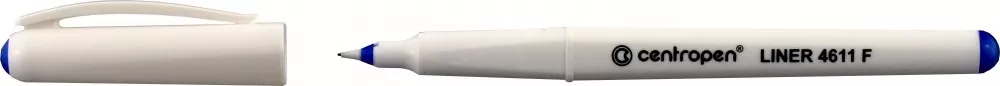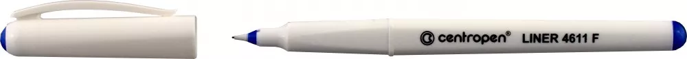 Liner Centropen 4611 0,3 modrý. Liner v novém, trojhranném designu s ERGO držením! Je osazený velmi jemným plastovým hrotem a plněný speciálním nevysychavým inkoustem. Vydrží i 14 dní bez chránítka a bude psát! Šíře stopy 0,3mm, délka stopy až 1500m. Určený k nejširšímu použití.