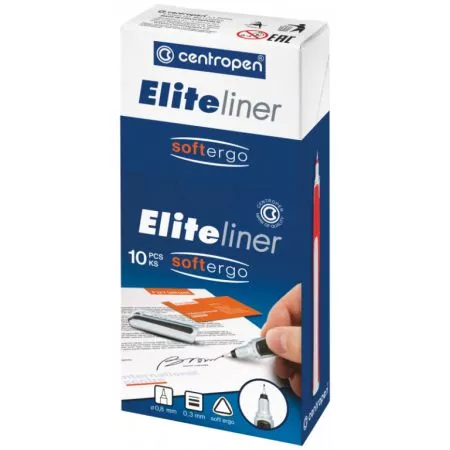 Liner Centropen 4721 0,3 červený. Elite liner 4721 F je liner v atraktivním designu. Tento liner má měkké gumové ERGO držení s masážními body, nevysychavý inkoust (vydrží i 14 dní bez chránítka), jemný plastový hrot v kovové objímce. Délka stopy 1 500 m, šířka stopy 0,3 mm. V naší nabídce naleznete i další barevné varianty. Celé balení obsahuje 10 kusů. Cena je uvedena za 1 kus.