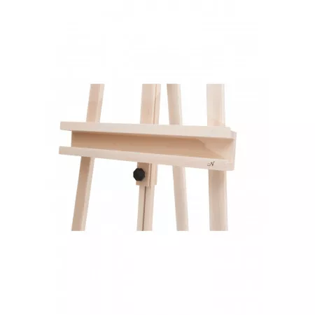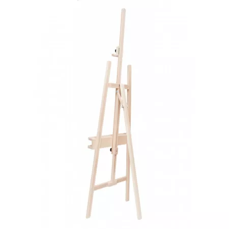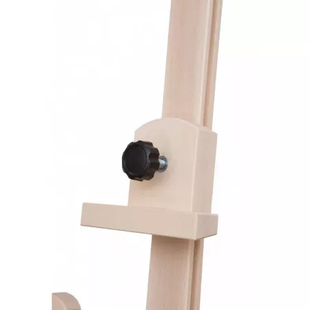 Malířský stojan buk s úchytem stabil 2 Nevrlka 183x63x14. Kvalitní malířský stojan z výběrového bukového dřeva určený pro pokročilé výtvarníky. Série stojanů stabil jsou vyrobeny z silnějšího materiálu, což přináší větší nosnost a stabilitu stojanu. Pomocí křídlových matic lze nastavit sklon stojanu. Stojan obsahuje úchyt, který slouží pro horní uchycení plátna. Prostřednictvím šroubu s plastovou hlavou lze snadno polohovat výšku horního úchytu i výšku police. Maximální výška plátna je 114 cm. Pouze tento stojan z naší nabídky disponuje 2-patrovou policí pro odkládání pomůcek. Bez povrchové úpravy.