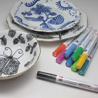 Marabu Porcelain Painter, popisovač na porcelán, 1-2 mm, 141 modrý blankytný. Lesklý popisovač na porcelán na bázi vody. Používá se na psaní a malování na sklo, porcelán, světlou glazovanou keramiku, kov a terakotu. Popisovače lze velmi dobře kombinovat s barvami Marabu - Porcelain. Všechny předměty je nutno před malováním důkladně vyčistit. Po namalování nechat zaschnout a poté vypálit v pečicí troubě 30 minut při teplotě 160°C. Po vypálení lze mýt v myčce na nádobí. Před použitím - nesundávat krytku - silně zatřepat. Po otevření opakovaně zatlačit na hrot a pumpovat tak dlouho, až se objeví barva. Poté nejdříve zkusit na papíře, ne na zdobeném předmětu. Dobře uzavírat krytku a uchovávat popisovače v horizontální poloze (položené). Hrot lze vyjmout a vyprat pod proudem vody.