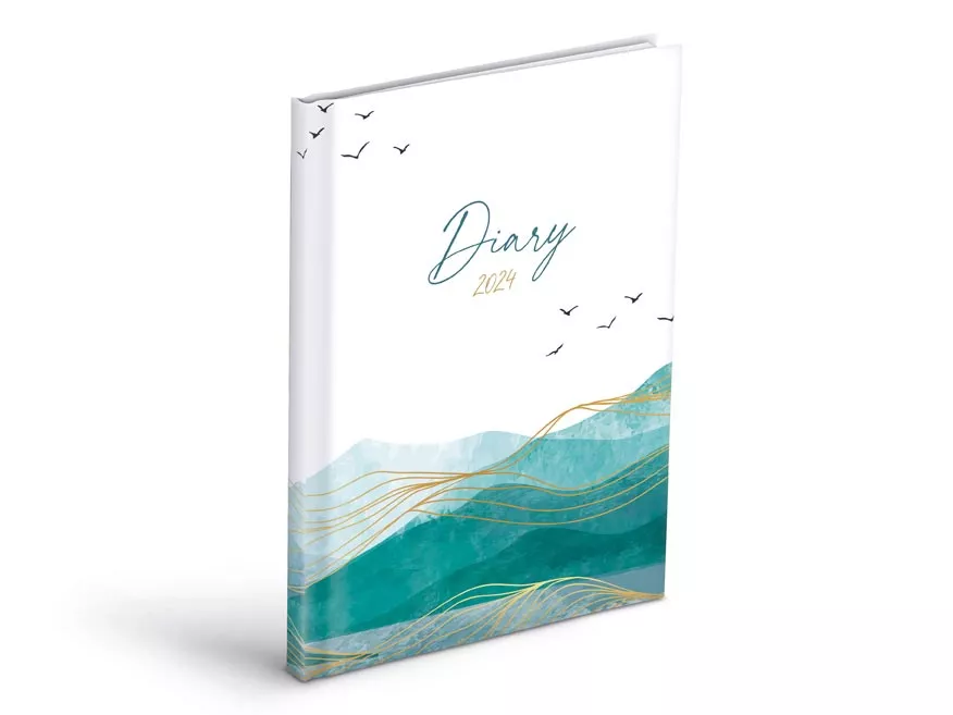 Týdenní diář pro rok 2024 ve formátu A5, vzor moře, který je výborným pomocníkem pro organizování Vašeho času. Diář má odtrhávatelný spodní rožek, který umožní rychlé nalistování aktuálního týdne.