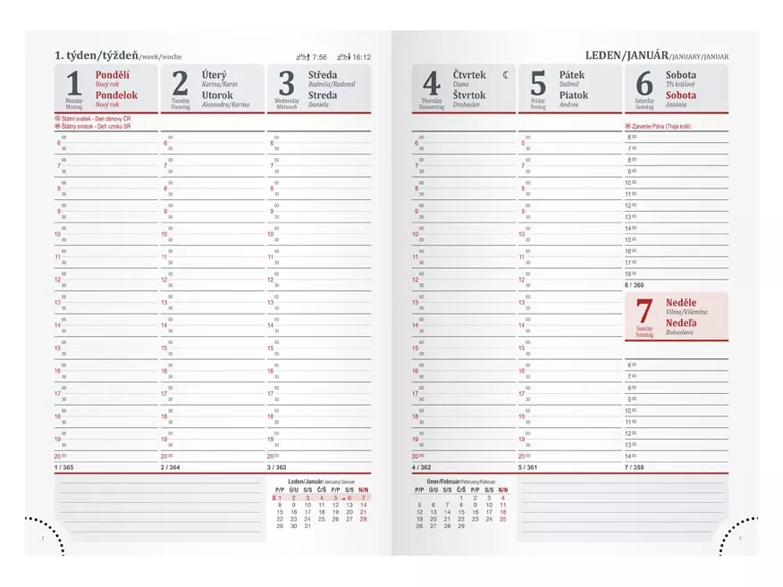 Diář obsahuje: