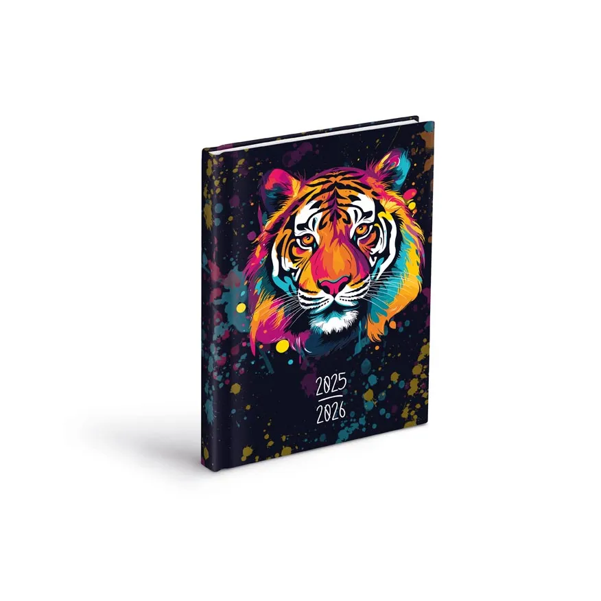 Tento studentský diář ve formátu A6 vám bude dělat parťáka od začátku roku 2025 až do konce 2026. Výrazný design s tygrem v neonových barvách z něj dělá nepřehlédnutelný kousek, který kombinuje divokost i sebevědomí – přesně to, co potřebujete ke zvládnutí školních (i osobních) výzev.