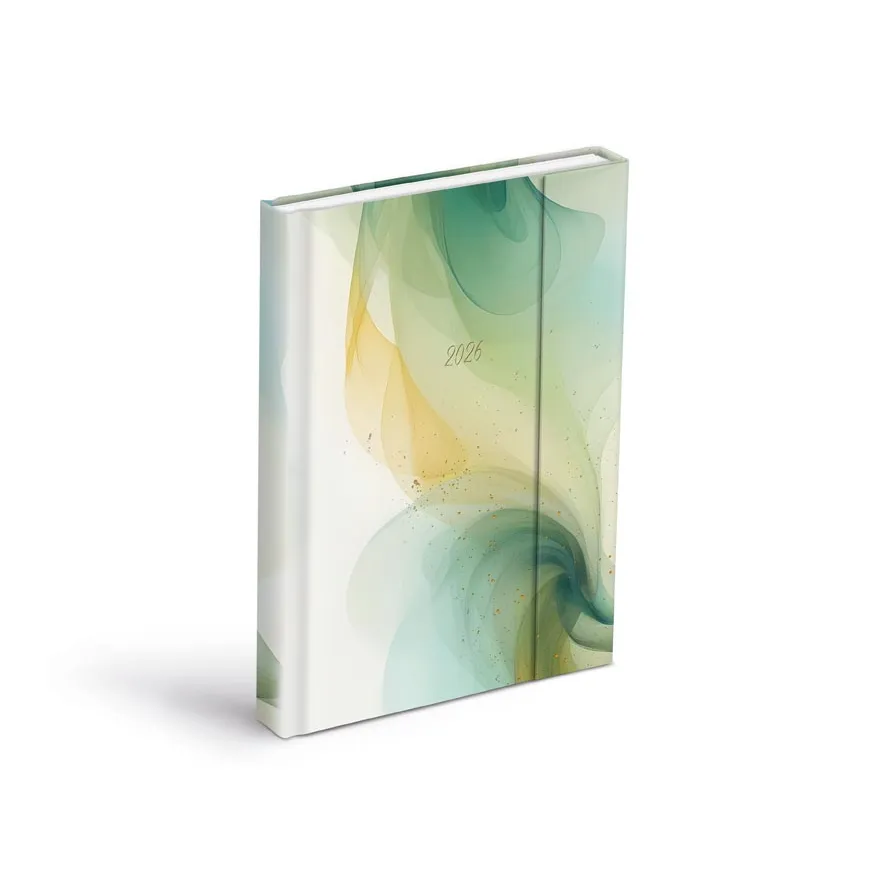 Zahalte svůj rok 2026 do barev klidu a plynulosti. Tento denní diář ve formátu A5 vás okouzlí abstraktním motivem připomínajícím jemný tanec dýmu v zelenozlatých tónech - decentní, ale nepřehlédnutelný. Uvnitř vás čeká denní rozvržení, které vám poskytne dostatek prostoru pro poznámky, úkoly i malé myšlenky, které nechcete ztratit.