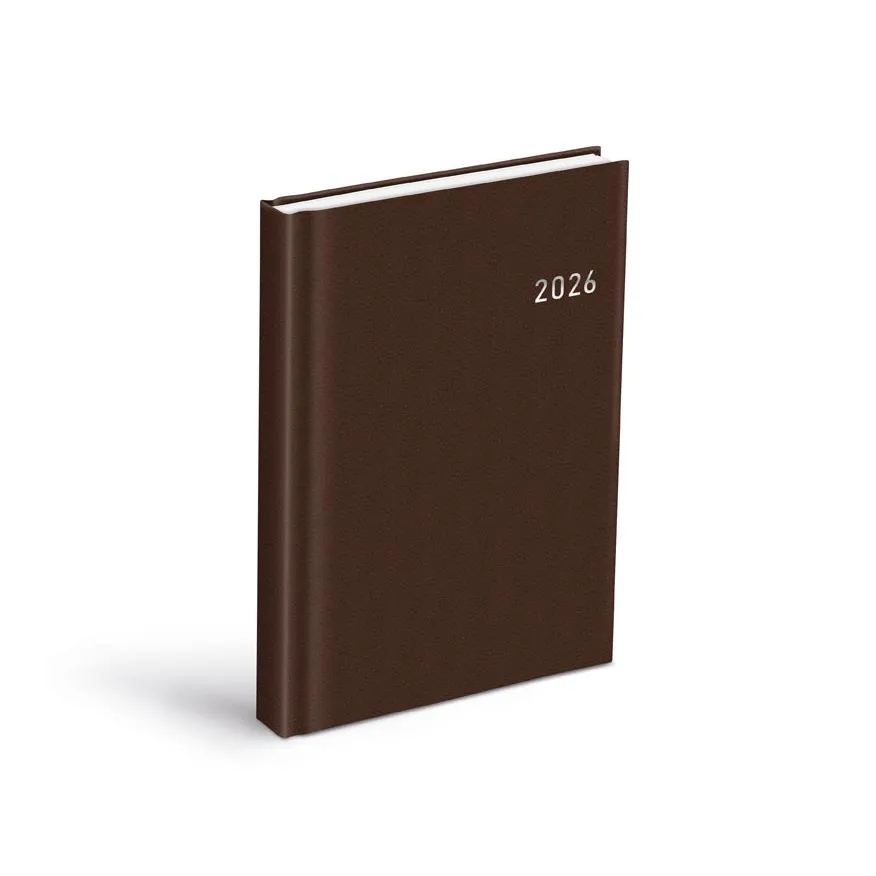 Denní diář 2026 ve formátu A5 v tmavě hnědé barvě představuje ideální kombinaci jednoduchosti, spolehlivosti a funkčnosti. Pevná obálka z odolného PVC chrání obsah před každodenním opotřebením a skvěle padne do každého pracovního prostředí.
