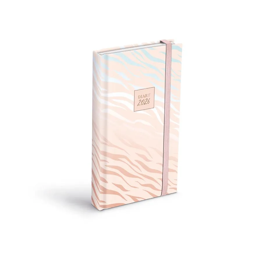 Denní diář 2026 s designem inspirovaným zvířecím motivem v tlumených tónech růžové, béžové a světle modré působí originálně a svěže. Obálka je z matného lamina s parciálním lakem, který zvýrazňuje vybrané detaily a dodává diáři jemný lesk na správných místech. Barevně sladěná gumička nejen ladí s designem, ale i drží diář pevně zavřený.