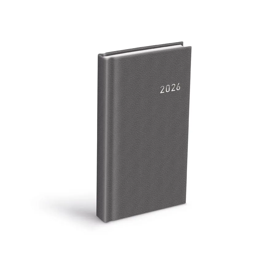 Denní diář 2026 v elegantní šedé barvě s decentně umístěným letopočtem na obálce je ideální volbou pro ty, kteří dávají přednost jednoduchosti, funkčnosti a čistému stylu – bez zbytečných ozdob, ale s důrazem na praktičnost.
