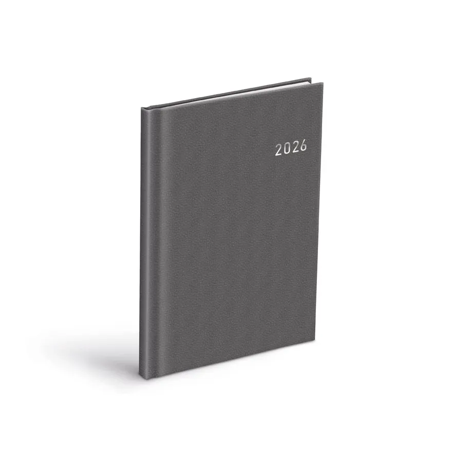 Tmavě šedý obal působí vyváženě a profesionálně. Tento týdenní diář ve formátu A5 s pevnými deskami z PVC je ideální pro každodenní používání – ať už v kanceláři nebo na cestách.