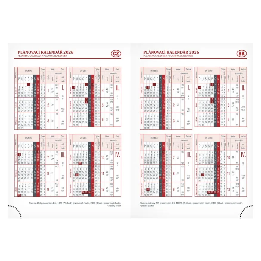 Týdenní rozvržení nabízí dostatek prostoru pro vše důležité, co potřebujete mít pod kontrolou. Praktickým prvkem jsou odtrhávací rožky, které umožňují snadno označit aktuální týden a rychle se v diáři zorientovat.