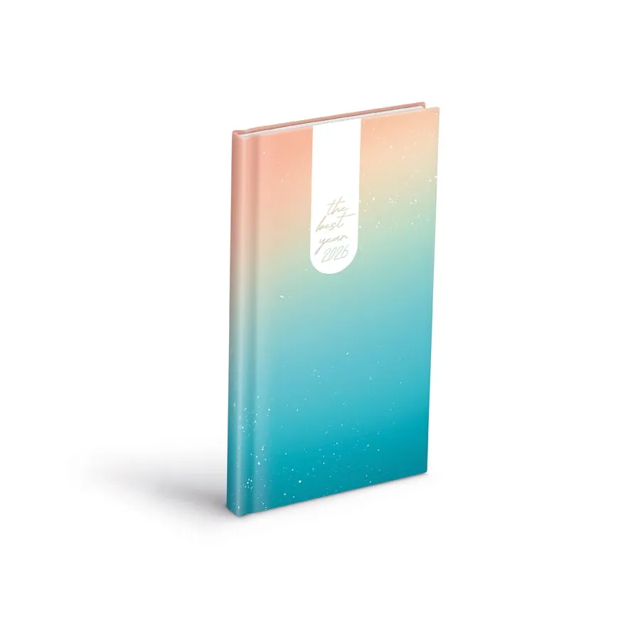 Týdenní diář 2026 upoutá jemným a moderním designem. Harmonický pastelový přechod z broskvové do tyrkysové barvy působí klidně, svěže a optimisticky – ideální pro pozitivní start do každého týdne.