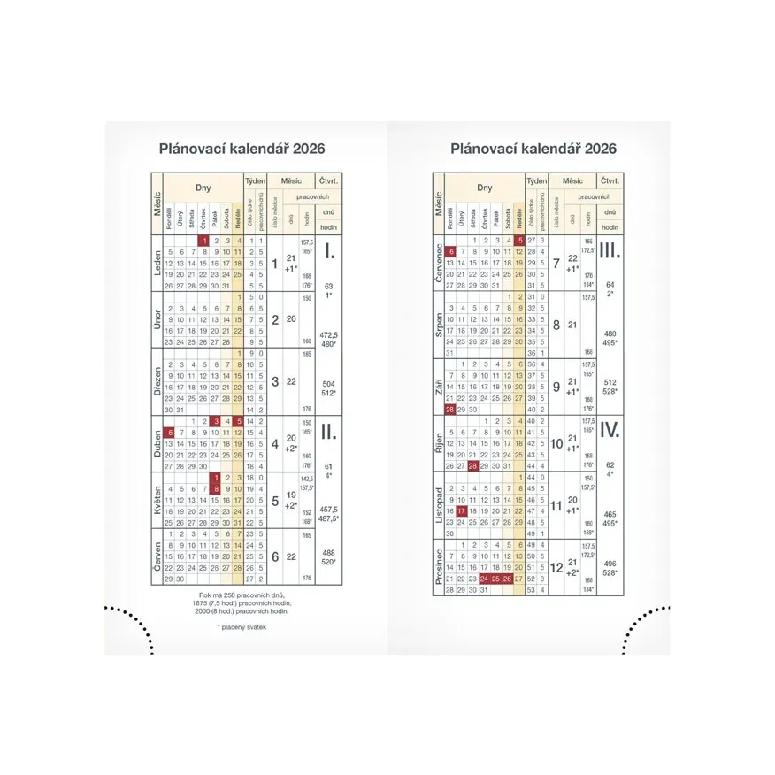 - plánovací kalendář