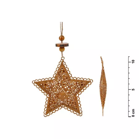 MFP hvězda závěs plech hnědá 8,5cm 8885734. Vánoční plechová hvězda, hnědé barvy s mini dírkami a 3D efektem Tato vánoční ozdoba je opatřena očkem, korálky a provázkem na zavěšení. Můžete použít na ozdobení vánočního stromečku, zavěsit na dveře, okno a zkrášlit tak Vaše bydlení. Uvedená cena je za 1 ...