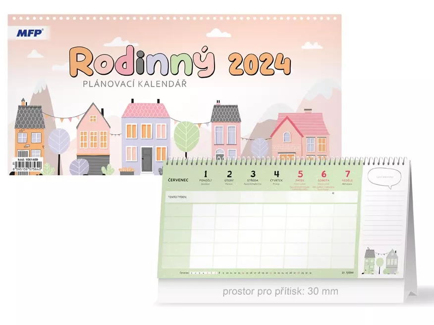MFP kalendář 2024 stolní Rodinný - plánovací 1061489. Stolní kalendář na rok 2024 Rodinný. Vhodný pro zapisování důležitých poznámek, k organizování různých událostí každodenního života celé rodiny. Naplánujte si rodinnou oslavu nebo výlet díky tomuto barevnému kalendáři. Najdete zde 336 kusů adhézních ...