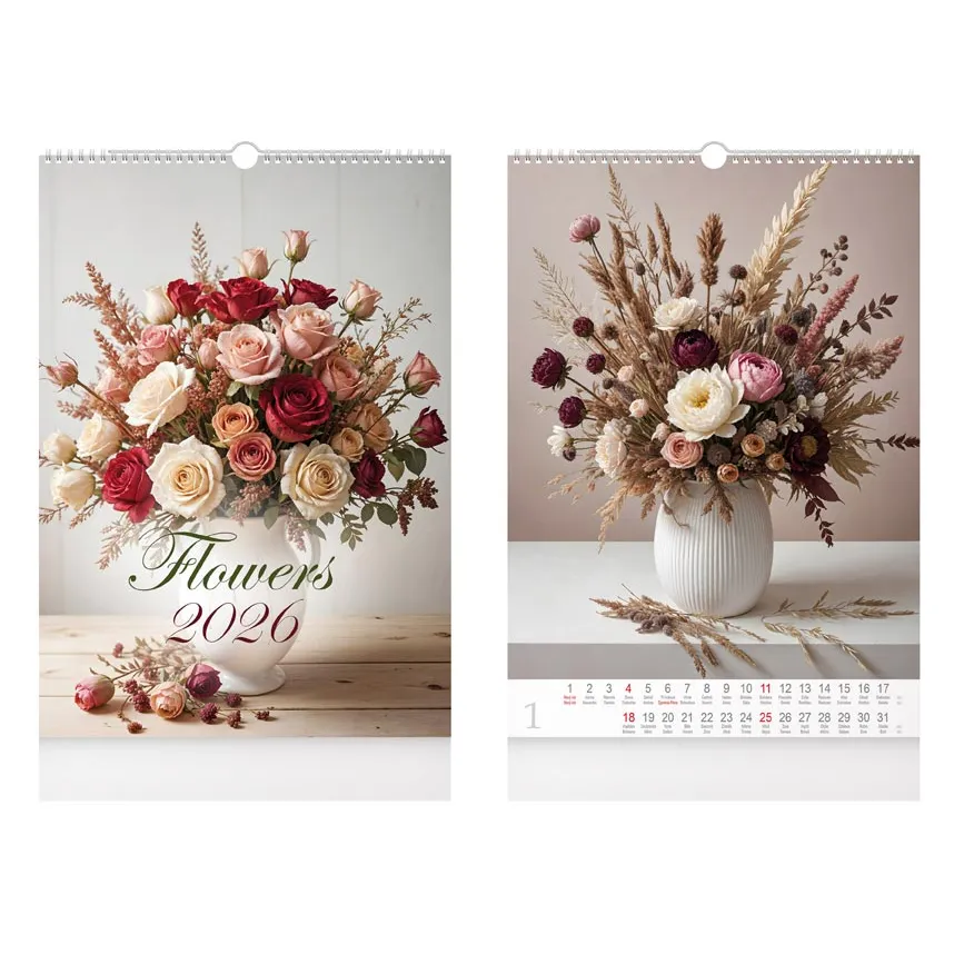 Rozjasněte si každý den pohledem na nádherné květinové vazby! Tento elegantní nástěnný kalendář na rok 2026 přináší kolekci okouzlujících fotografií květin, které potěší oči i duši. Inspirujte se světem barev, tvarů a vůní – ať už hledáte nápady pro vlastní aranžmá nebo si jen chcete dopřát chvilku krásy a klidu.