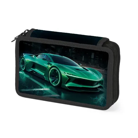 Obal zdobí futuristický sporťák, který vypadá, jako by právě sjel z tratě nejrychlejšího závodui přímo do vaší tašky. Dvě patra plná prostoru čekají na vaše pastelky, fixy, tužky a tajné školní poklady. Jeho odolný zip a pevné provedení zaručují, že všechno zůstane na svém místě.