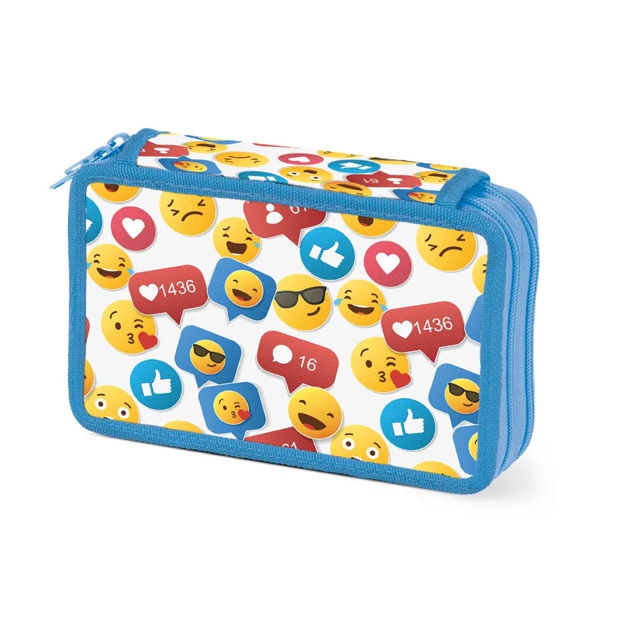 Školní dvoupatrový nevybavený penál Smile s obrázky smajlíků. Penál obsahuje 24 poutek na psací potřeby a 3 větší např. na pravítko, ořezávátko, gumu nebo nůžky. Uzavírá se pomocí zipu a je z kvalitních a odolných materiálů. Bezesporu je nezbytnou součástí vybavení každého školáka.