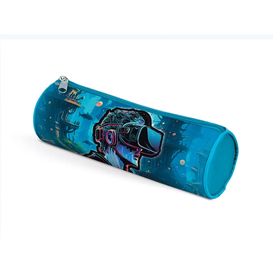 Etue Dive In není jen obyčejný obal na psací potřeby – je to brána do futuristického podmořského vesmíru. Na jejím povrchu ožívá fascinující motiv postavy s VR brýlemi, která se noří do tajemného oceánu plného barevných ryb, zářících bublin a fantastických podvodních staveb.