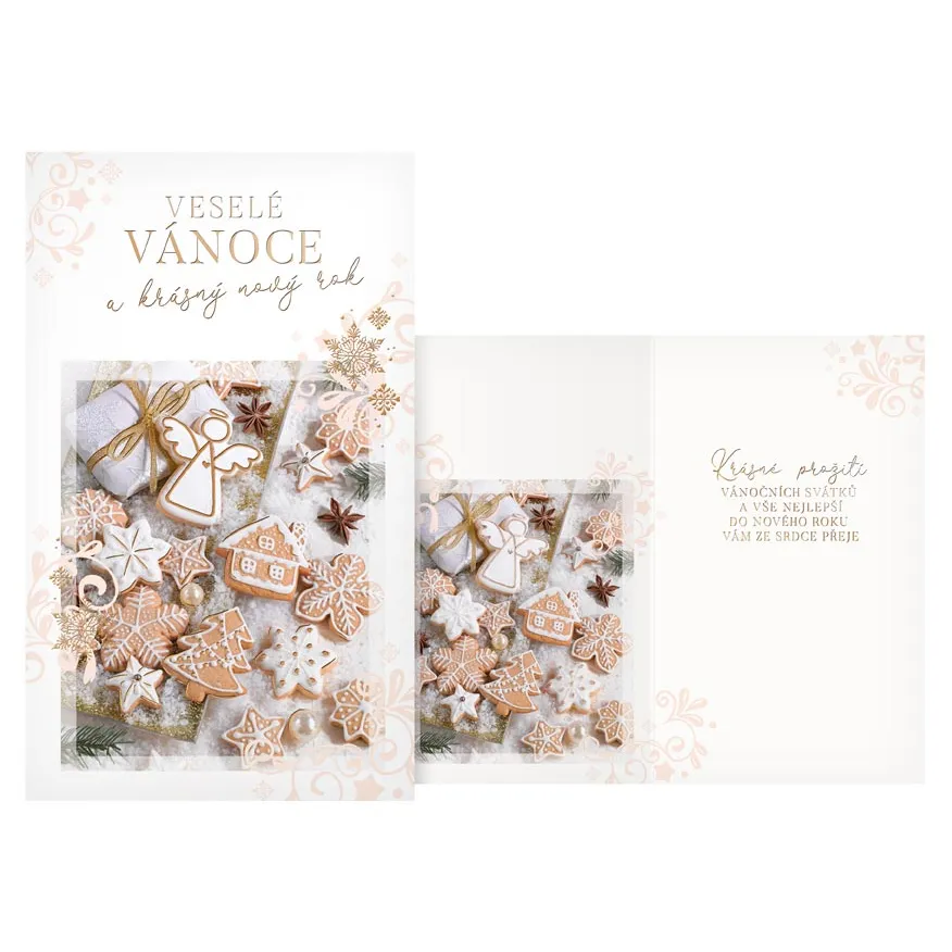 Vánoční přání s krásným motivem vánočního perníčkového cukroví je ideálním způsobem, jak popřát veselé Vánoce a šťastný nový rok. Je to elegantní a tradiční způsob, jak v tomto kouzelném období roku sdílet radost, lásku a přání všeho nejlepšího.