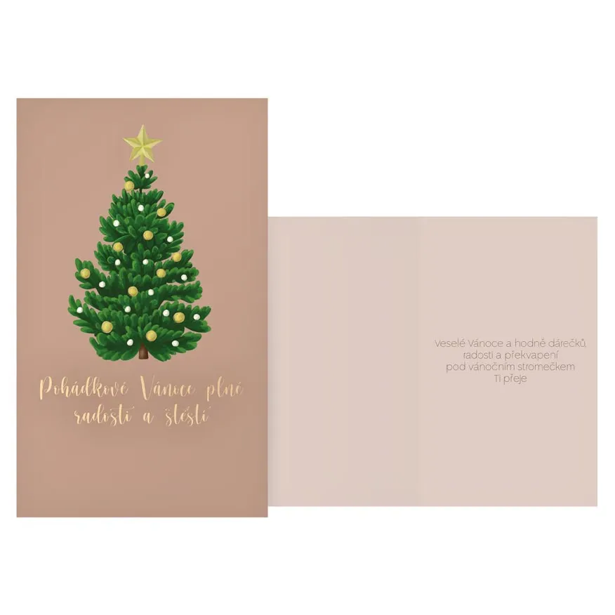 Vánoční přání s krásným motivem ozdobeného vánočního stromku je ideální volbou pro ty, kteří chtějí sdílet kouzlo Vánoc plné radosti a štěstí. Toto přání je vhodné pro každého, komu chcete popřát veselé a klidné Vánoce – ať už pro rodinu, přátele nebo kolegy.