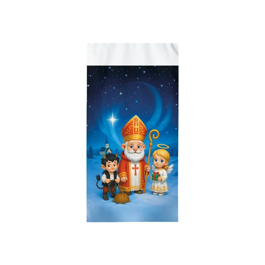 Krásný sáček s veselým motivem Mikuláše, anděla a čertíka dodá vaší nadílce tu pravou sváteční atmosféru. Díky kvalitní PP fólii je pevný a praktický, ideální na sladkosti, ovoce i malé dárky. Perfektní volba pro školy, školky, firmy i domácí mikulášskou nadílku.