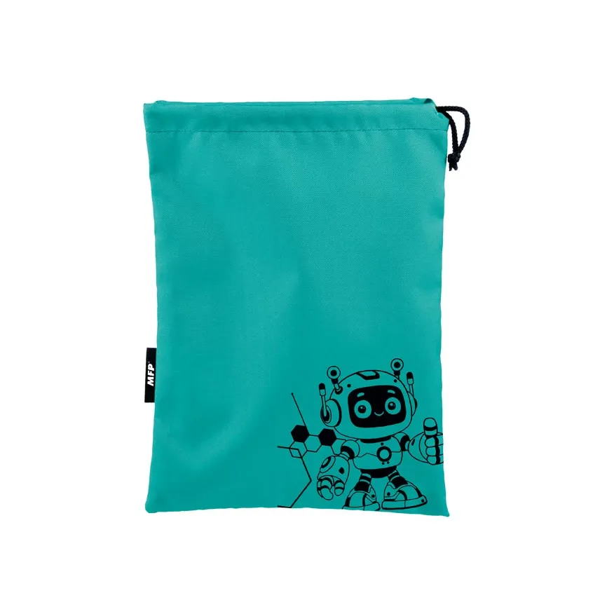 Už žádné hledání přezůvek! Tento látkový sáček na přezůvky v živé zelené barvě s vtipným motivem robota je přesně to, co potřebujete, aby mělo vaše dítě vše uspořádané a připravené na každý den.