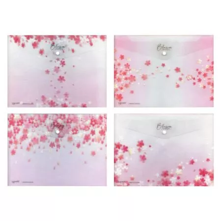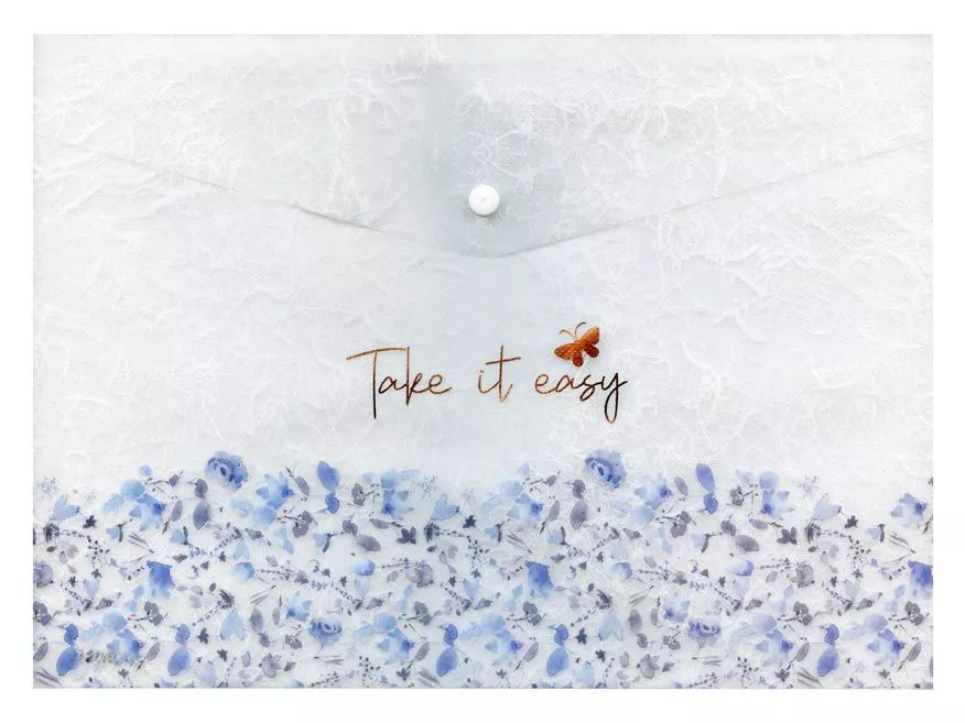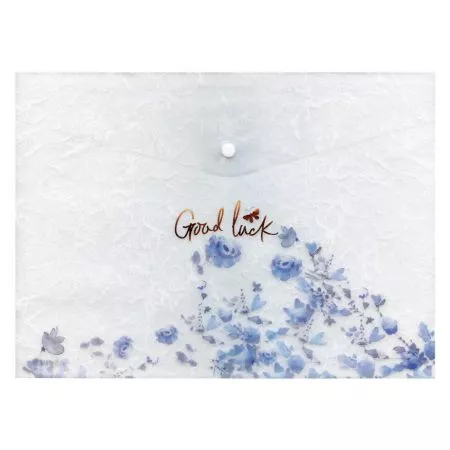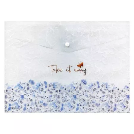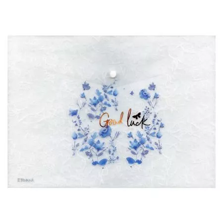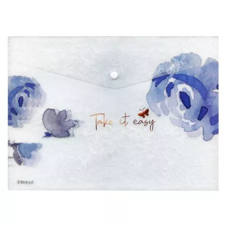 MFP složka M, druk A5, potisk modré květy - 5370598. Složka z PolyPropylenu (PP), která se zavírá pomocí druku (patentky) - velikost A5. Transparentní barva se vzorem modrých květů. Uvedená cena je za 1ks.