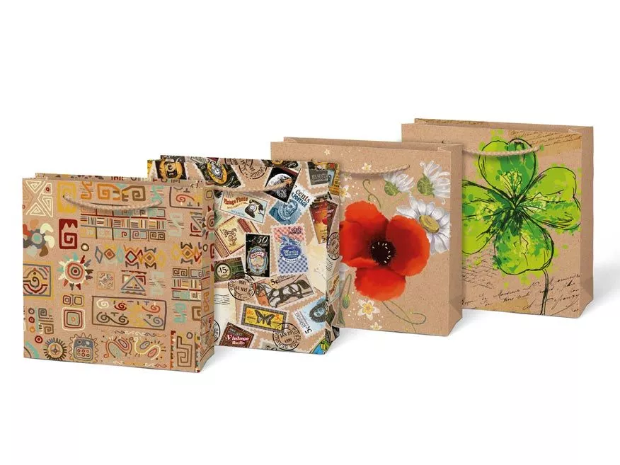 MFP taška dárková M KRAFT mix č. 4 190x250x90 - 5251454. Papírová dárková taška s potiskem. Taška je opatřena pevným uchem pro snadné nošení a kartičkou kam můžete napsat jméno nebo krátké věnování. Pokud nemáte čas balit dárek do dárkového balícího papíru tak právě pro Vás máme široký výběr dárkových tašek.