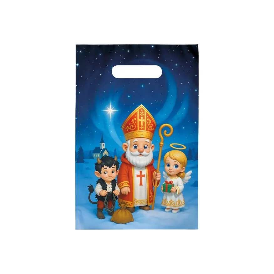 Taška je ideální pro balení sladkostí, ovoce nebo malých dárků. Díky praktickému průhmatu se snadno přenáší a skvěle poslouží při mikulášské nadílce doma i ve školních kolektivech.
