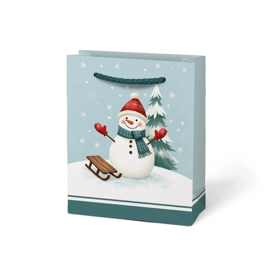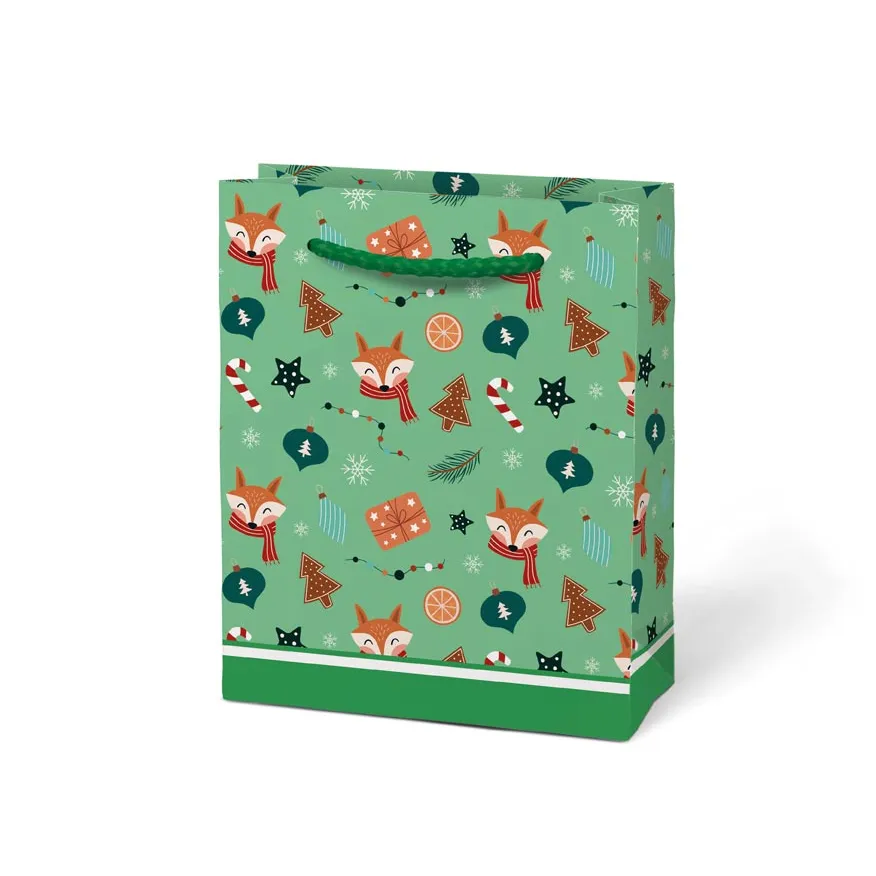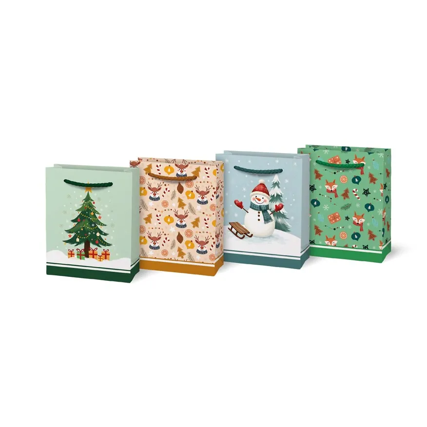 Na výběr máte několik veselých vánočních motivů – sněhulák, sobi, stromeček nebo lišky v zasněžené krajině. Kvalitní papír a pevná textilní ucha zajistí, že taška nejen dobře vypadá, ale také něco unese.
