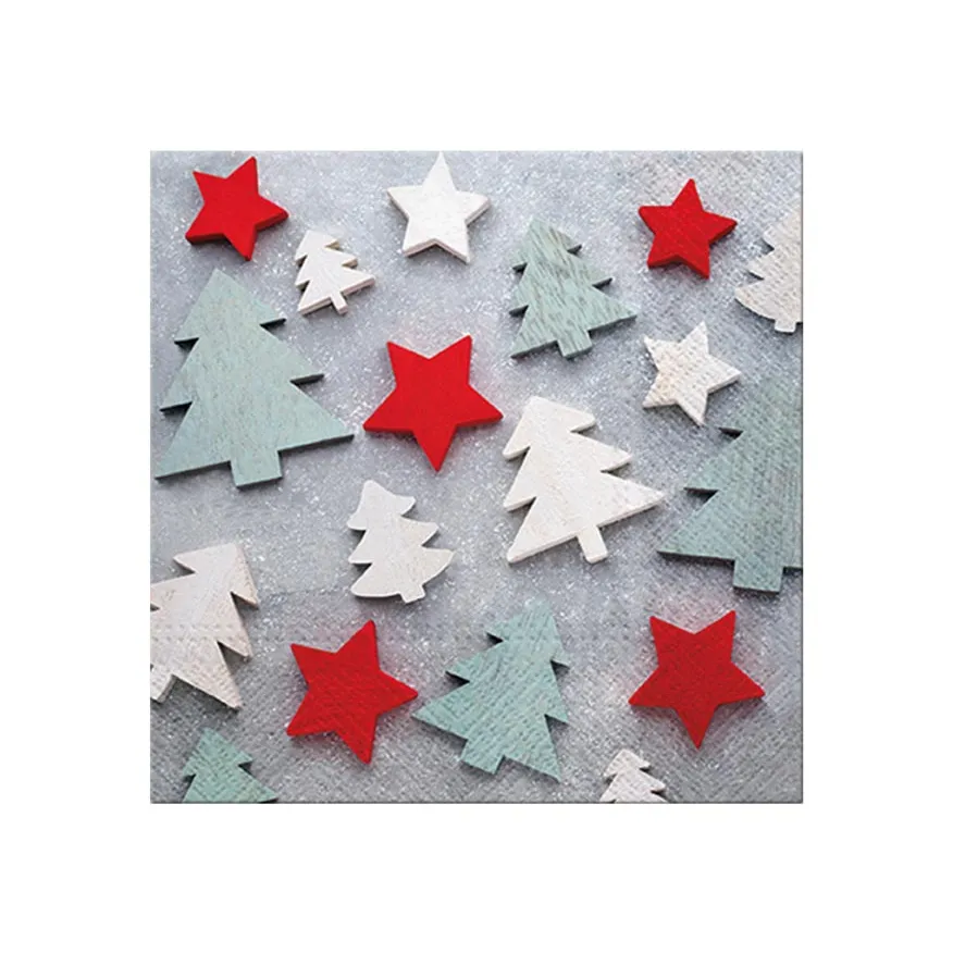 Originální ubrousek s motivem barevných stromečků a hvězdiček přinese na váš stůl hravou, ale zároveň stylovou atmosféru. Kombinace červené, bílé a zelenošedé barvy působí moderně a hodí se jak k tradičním, tak i k minimalistickým dekoracím.