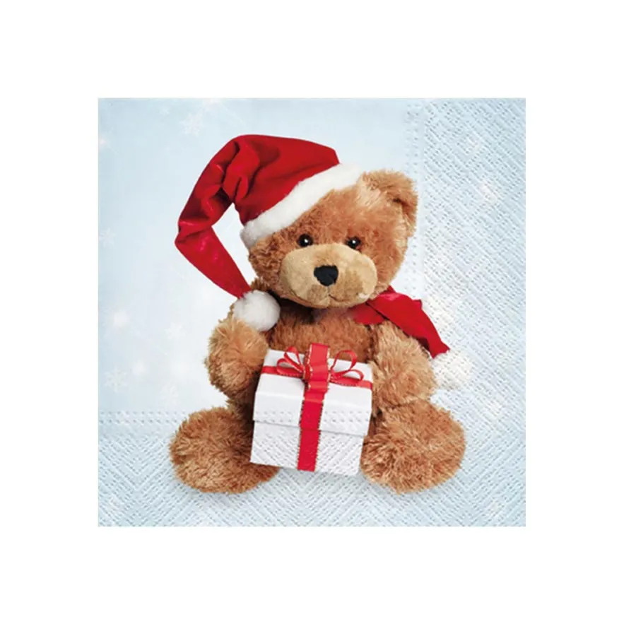 Roztomilý motiv plyšového medvídka v červené čepici a šále s bílým dárkem v rukou vnese na váš stůl hravou a radostnou atmosféru Vánoc. Ideální volba pro sváteční stolování s dětmi, rodinné oslavy nebo zimní posezení s přáteli.