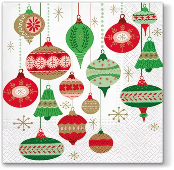 Papírové vánoční ubrousky - Kvalitní vánoční ubrousky z třívrstvého papíru s motivem různých baněk. Jsou krásným vánočním doplňkem, které zpestří vánoční prostírání a vykouzlí příjemnou atmosféru.
