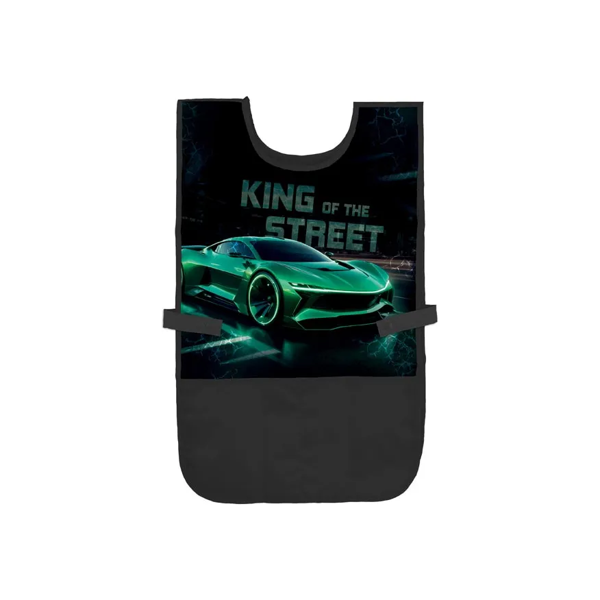 Dětská zástěra se sportovním autem je ideálním doplňkem pro malé kreativce, kteří milují rychlost i zábavu. Díky dvěma úrovním zapínání na druky po stranách skvěle padne a snadno se přizpůsobí. Pohodlné oblékání přes hlavu umožní dětem rychlé nasazení i sundání bez pomoci. Praktické kapsy ve spodní části poslouží na štětce, pastelky nebo jiné drobnosti, které je dobré mít po ruce. Odolný a snadno omyvatelný materiál zajistí, že si děti mohou užít malování, vyrábění nebo třeba pečení bez obav o své oblečení.