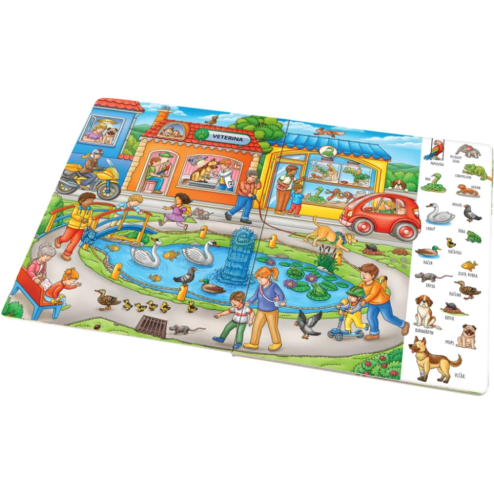 Mia a Eliáš, vrstevníci našich malých čtenářů, žijí s maminkou a tatínkem v malém městě. Doma, na zahradě, na procházce v parku nebo v lese, v zoo či při návštěvě statku, všude jsou obklopeni spoustou zvířátek, která milují. A co teprve, když o prázdninách vyrazí k moři – tam poznají další, která zatím znali jen z knížek! Podobně jako děti, kterým je určená tahle krásná barevná knížka plná propracovaných ilustrací. Díky ní se vaši nejmenší naučí pojmenovávat celou řadu živočichů a zároveň budou rozvíjet základy svých předčtenářských dovedností. Stačí se jen pozorně dívat…