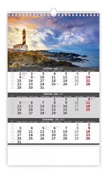 Nástěnný kalendář 2017 Helma, Pobřeží - 3měsíční N200-17. Formát: 315x450mm, prostor pro přítisk: 315x70mm, kalendárium: české/slovenské tříměsíční se svátky vybraných evropských států, vazba: twin wire s očkem