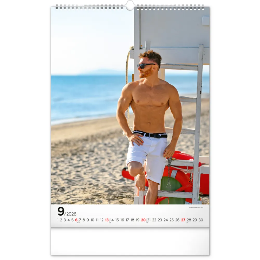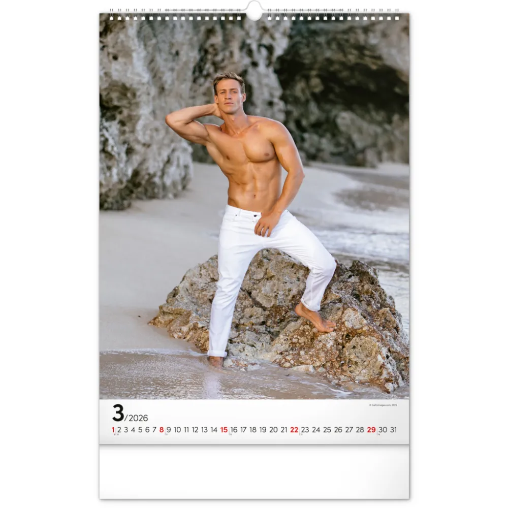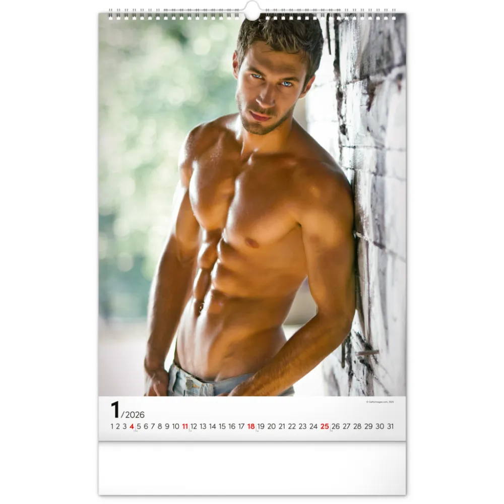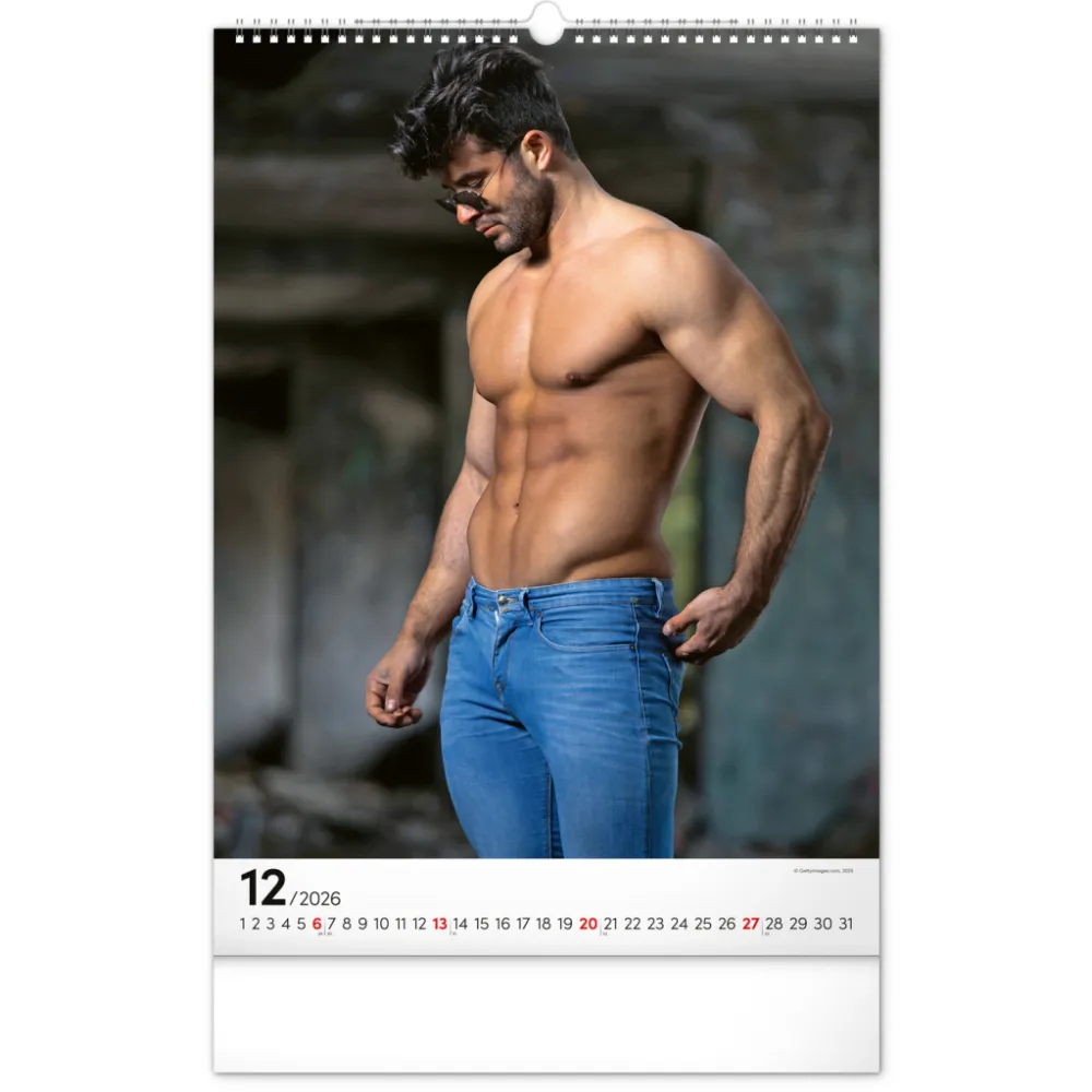 Kalendář přináší dvanáct fotografií pohledných mužů, kteří zaujmou nejen svým vzhledem, ale i charismatem. Elegantní provedení doplňuje jednoduché kalendárium se zvýrazněnými nedělemi na bílém pozadí.