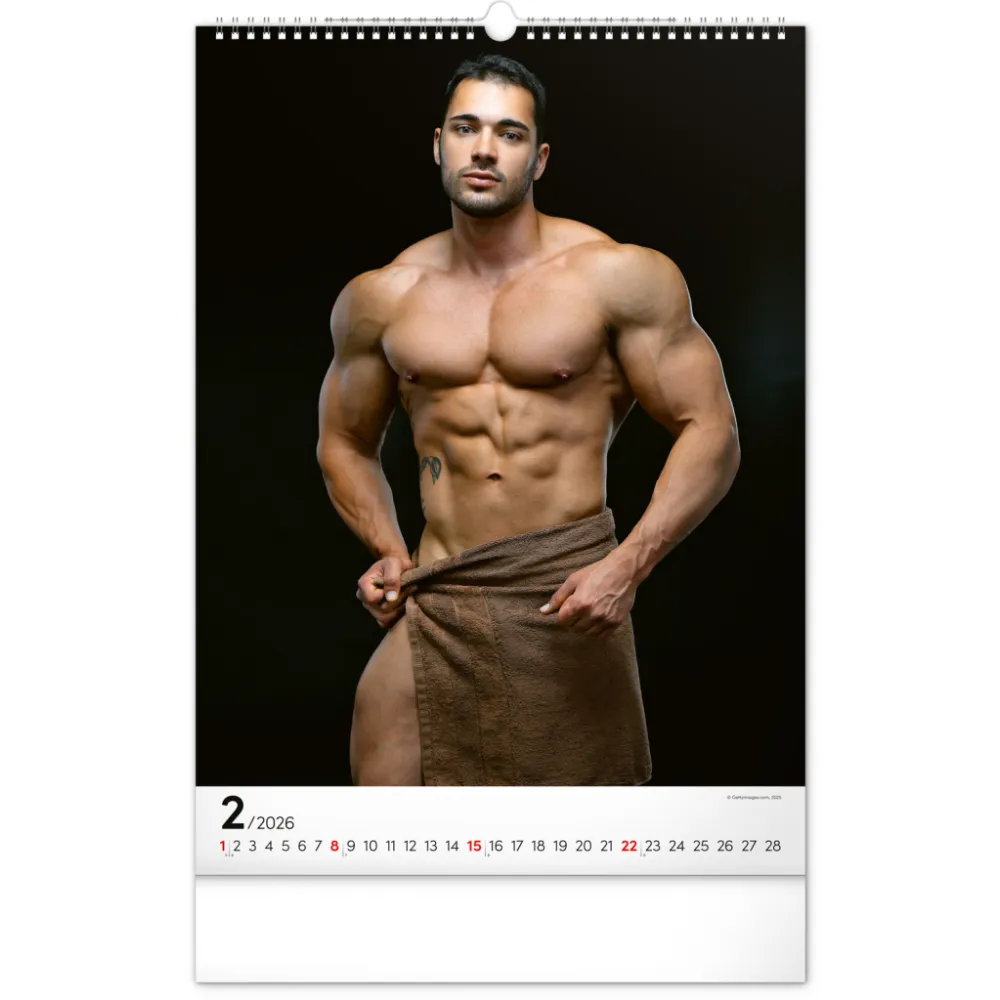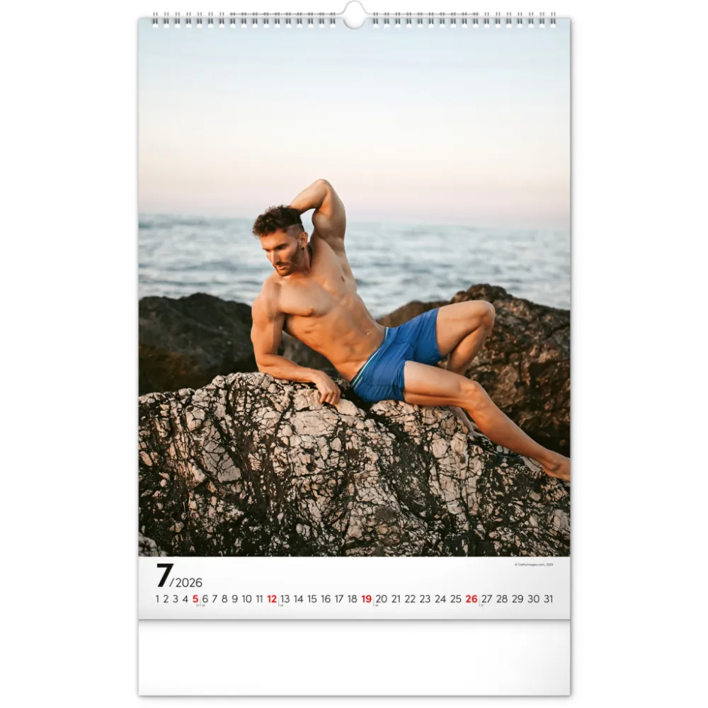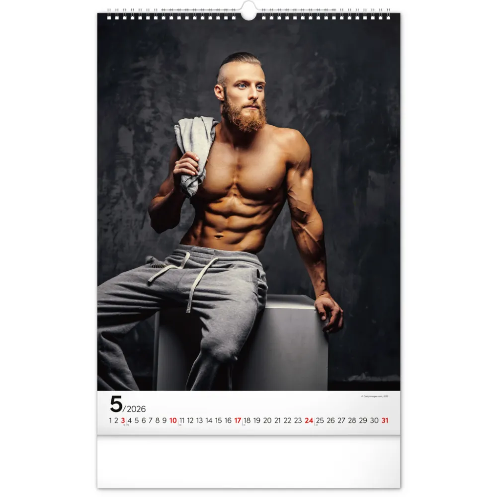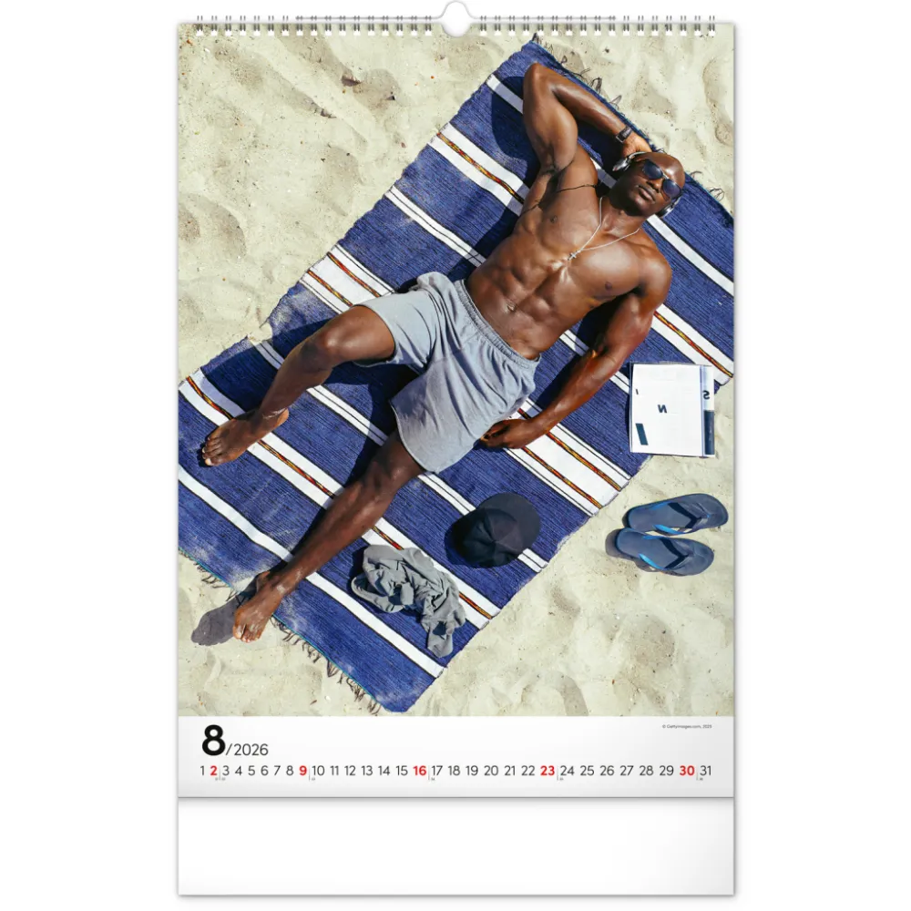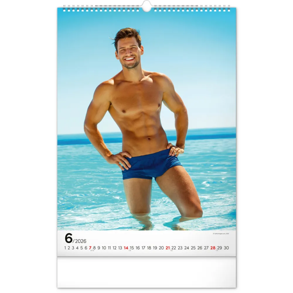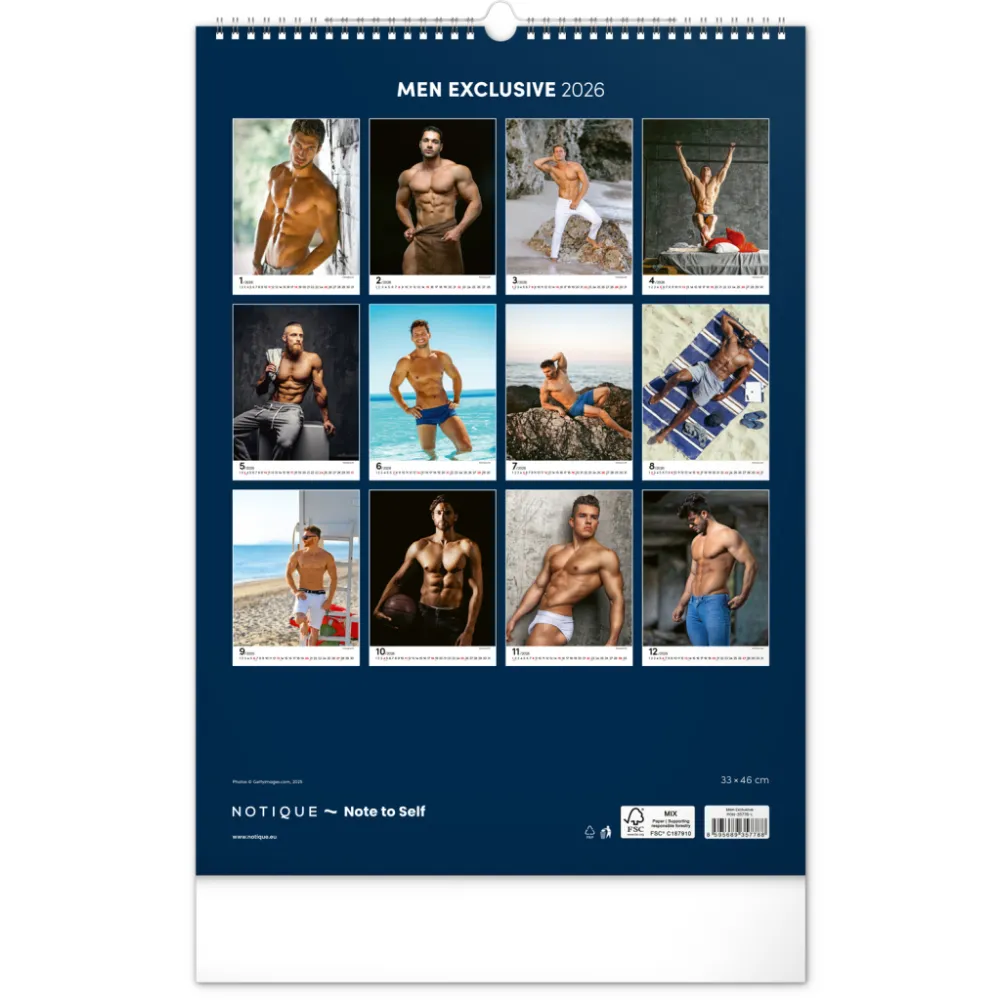 Nástěnný kalendář Men Exclusive 2026, 33 x 46 cm. Kalendář přináší dvanáct fotografií pohledných mužů, kteří zaujmou nejen svým vzhledem, ale i charismatem. Elegantní provedení doplňuje jednoduché kalendárium se zvýrazněnými nedělemi na bílém pozadí.