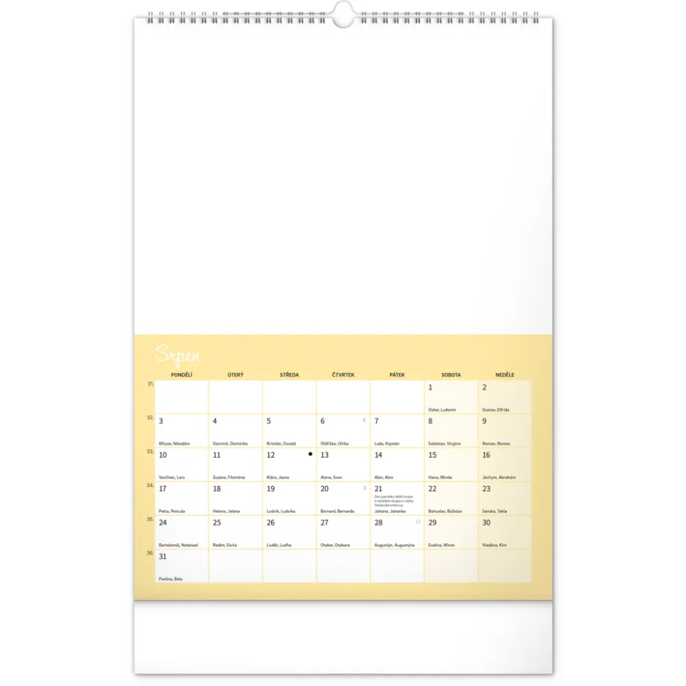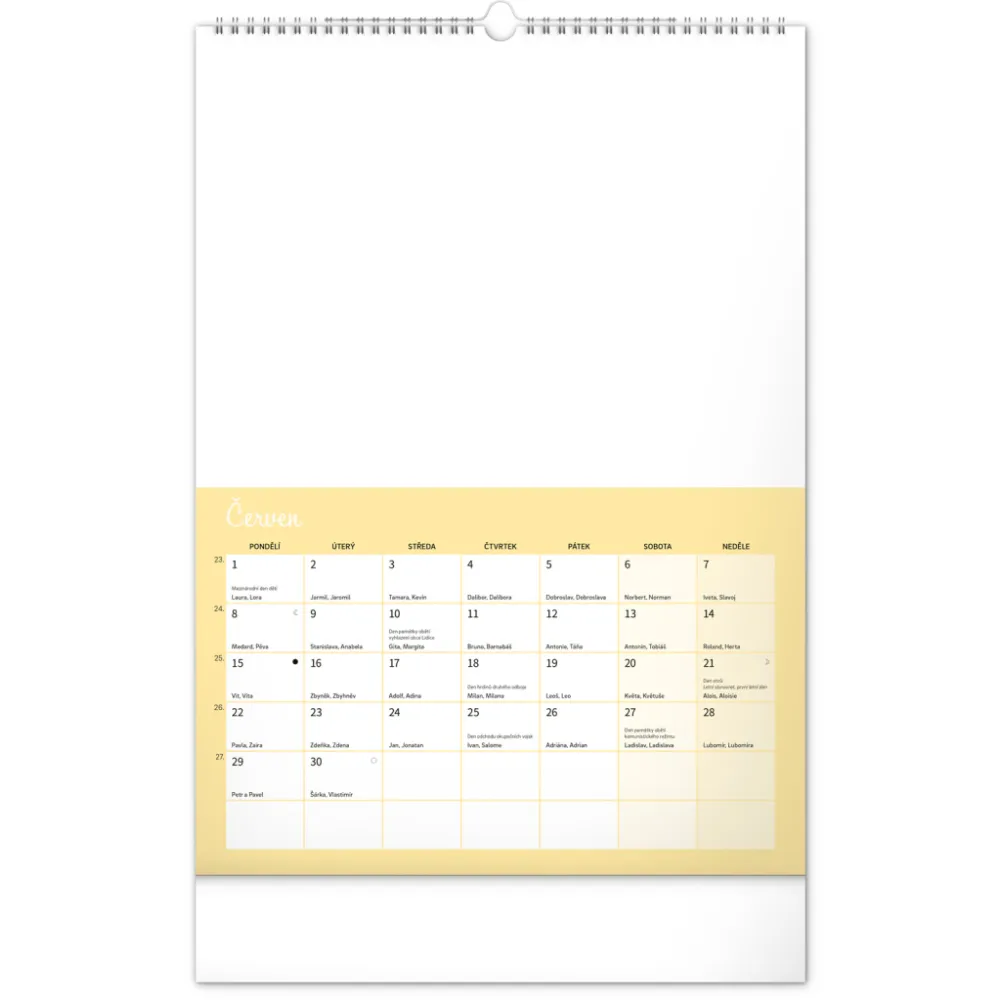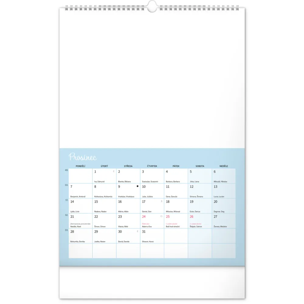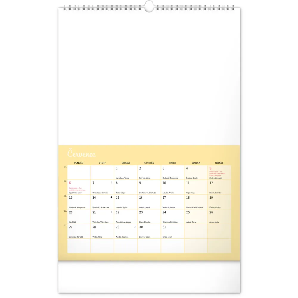 Kreativní rodinný kalendář je originální nástěnný kalendář, který dává prostor vaší fantazii. Každý měsíc nabízí volnou plochu, kterou si děti mohou ozdobit různými výtvarnými technikami – od kreslení pastelkami až po nalepení fotografií či vylisovaných květin. Vytvořte si jedinečný kalendář plný osobních vzpomínek a radosti, který potěší nejen vaši rodinu, ale také poslouží jako krásný dárek. Nabízí české kalendárum včetně státních svátků, jmenin a prostoru pro plánování aktivit s vaší rodinou.