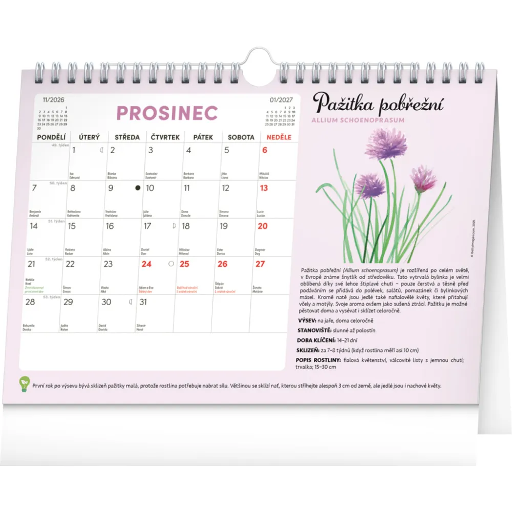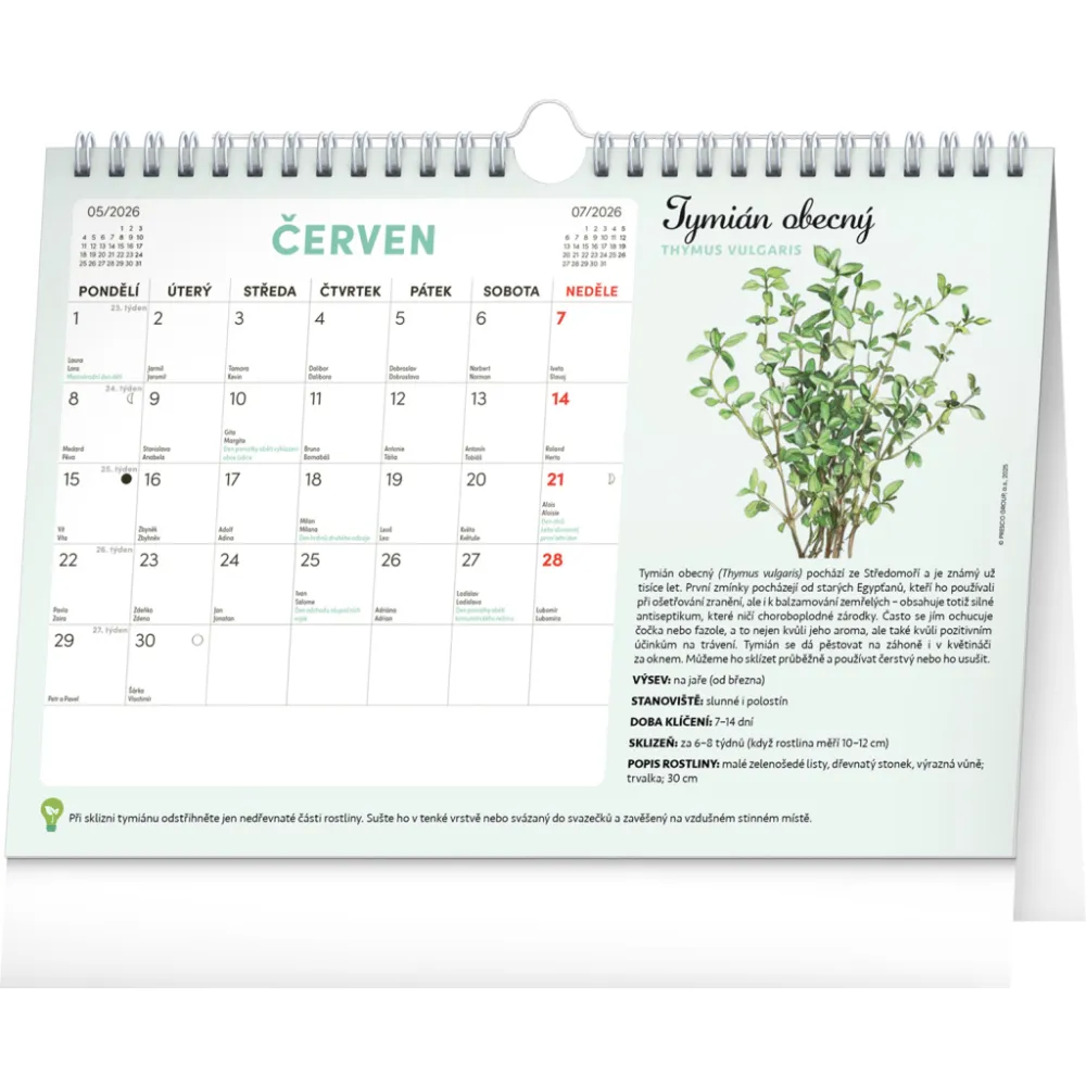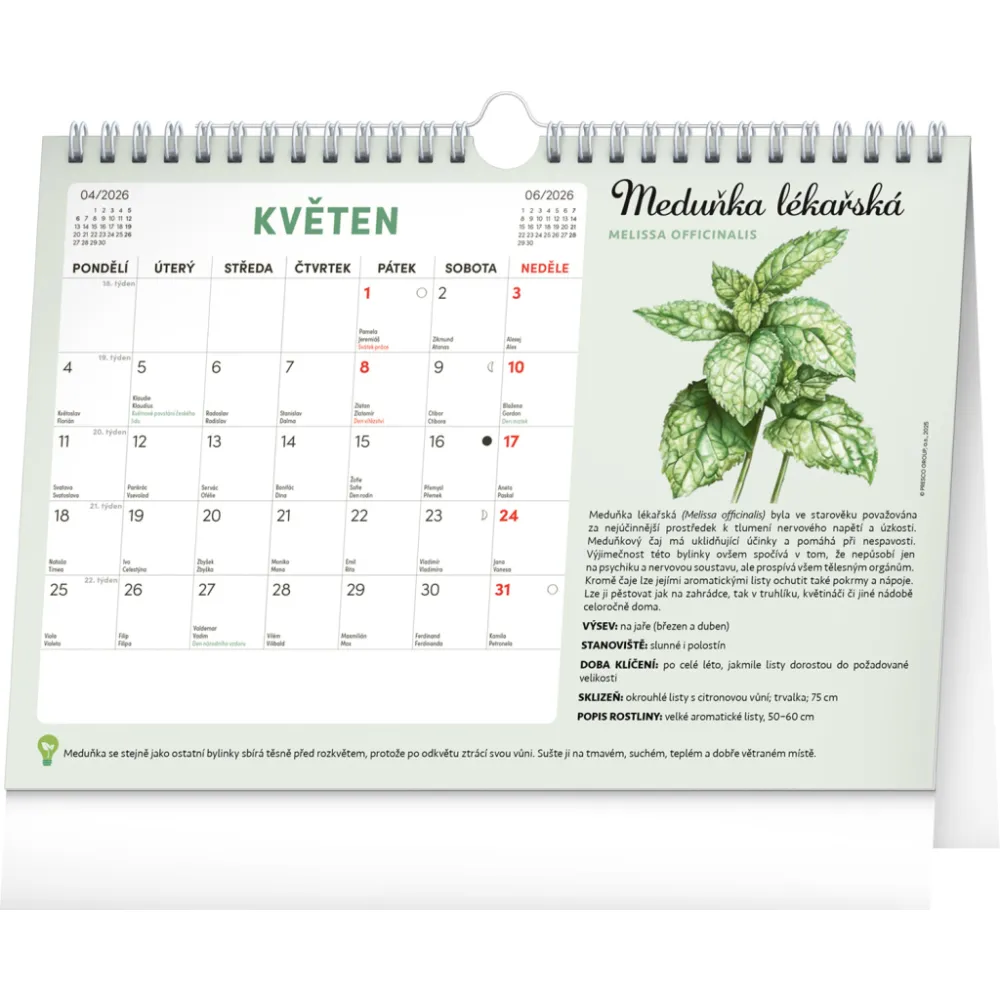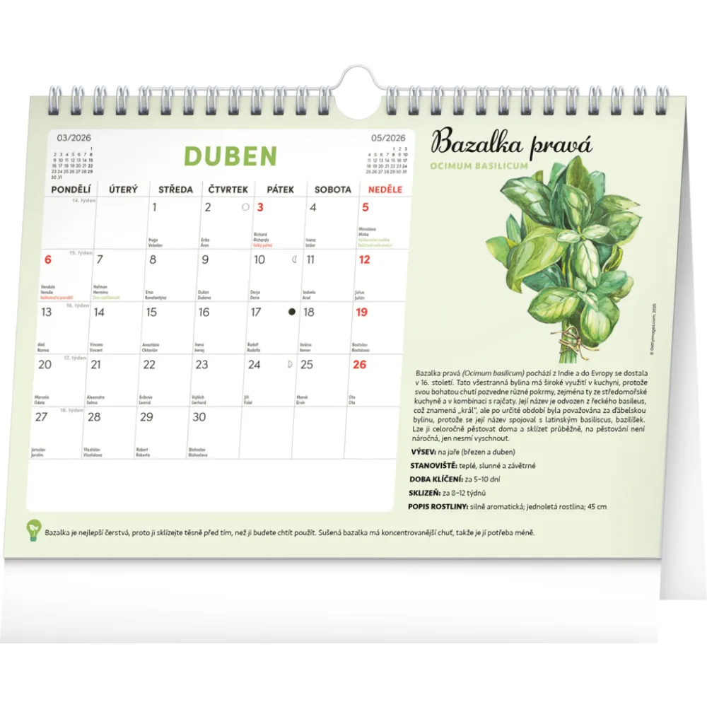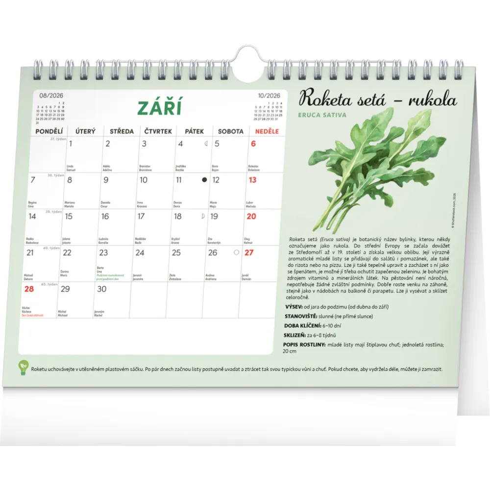 Objevte jedinečný stolní kalendář, který vám každý měsíc nabídne nejen dostatek prostoru na poznámky, ale i semínka rostlin, jež si můžete snadno vypěstovat doma. Stačí zasadit speciální semínkový papír do hlíny, zalévat a sledovat, jak vám rostou rajčata, bazalka, meduňka a další bylinky či zelenina. Ideální pro všechny, kteří chtějí zažít radost z pěstování a mít kousek zahrádky přímo u sebe doma. Obahuje měsíční kalendárium s českými svátky a jmeninami a 12 archů speciálního papíru se semínky.