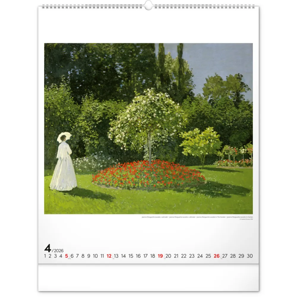 Seznamte se s dílem předního představitele impresionismu Clauda Moneta. Obrazy pestrých krajin a postav ožívají na velkém formátu kalendáře s vysokou gramáží papíru.