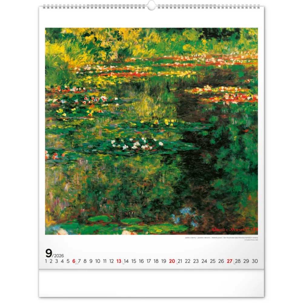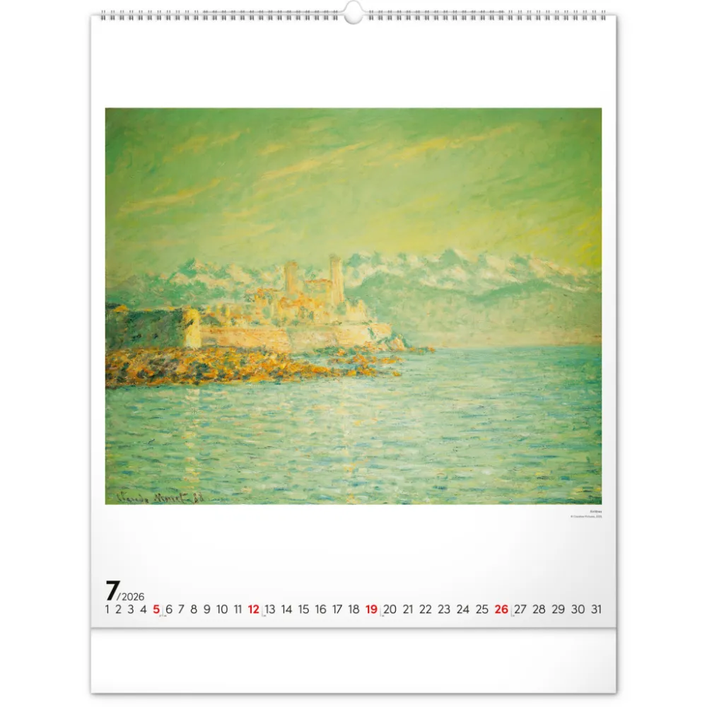 NOTIQUE Nástěnný kalendář Claude Monet 2026, 48 x 56 cm. Seznamte se s dílem předního představitele impresionismu Clauda Moneta. Obrazy pestrých krajin a postav ožívají na velkém formátu kalendáře s vysokou gramáží papíru.