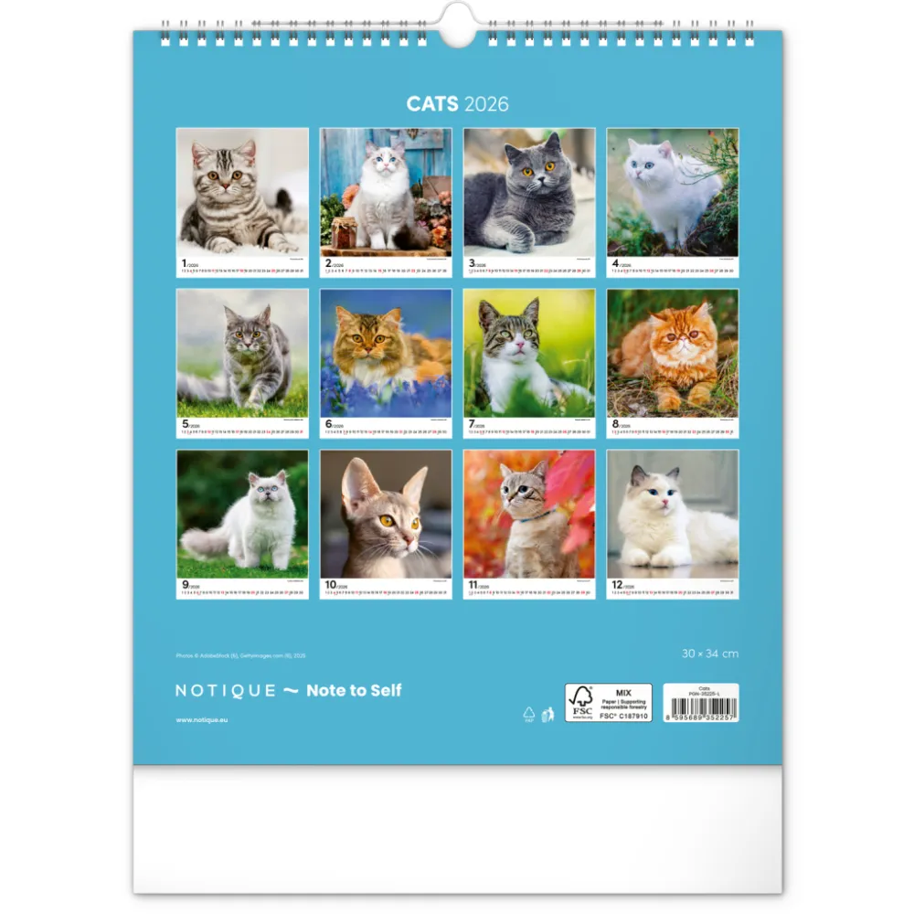 Detailní popis: NOTIQUE Nástěnný kalendář Kočky 2026, 30 x 34 cm