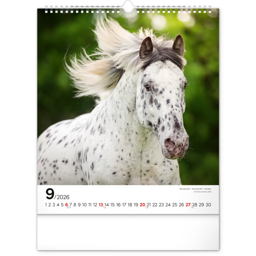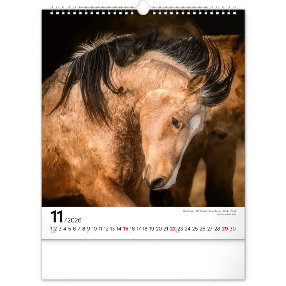 NOTIQUE Nástěnný kalendář Koně 2026, 30 x 34 cm. Koně a jejich ušlechtilá krása na originálních snímcích známé německé fotografky Christiane Slawik. Fotografie jsou doplněny univerzálním kalendáriem se zvýrazněnými nedělemi.