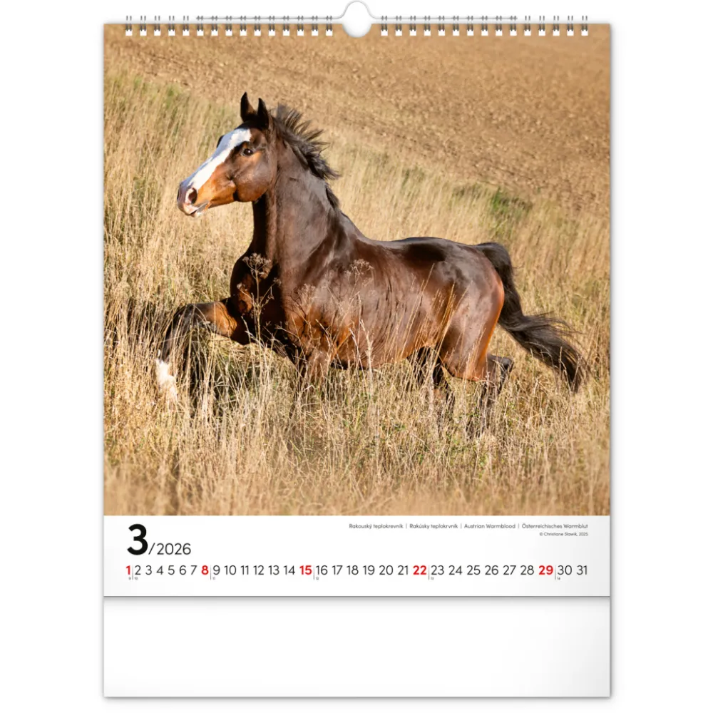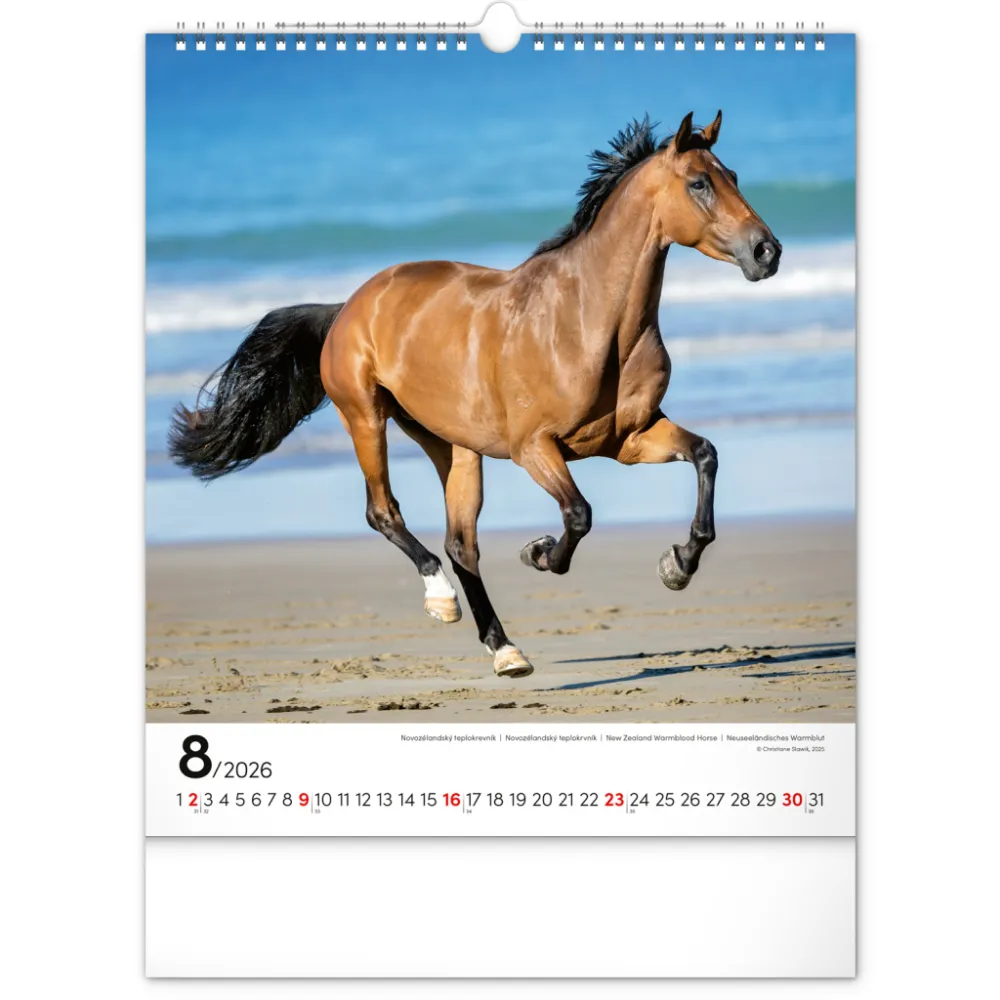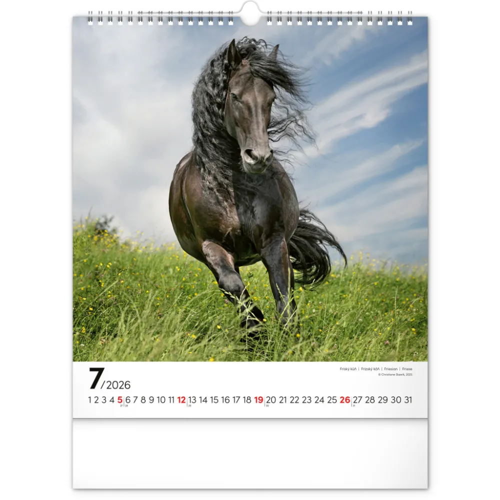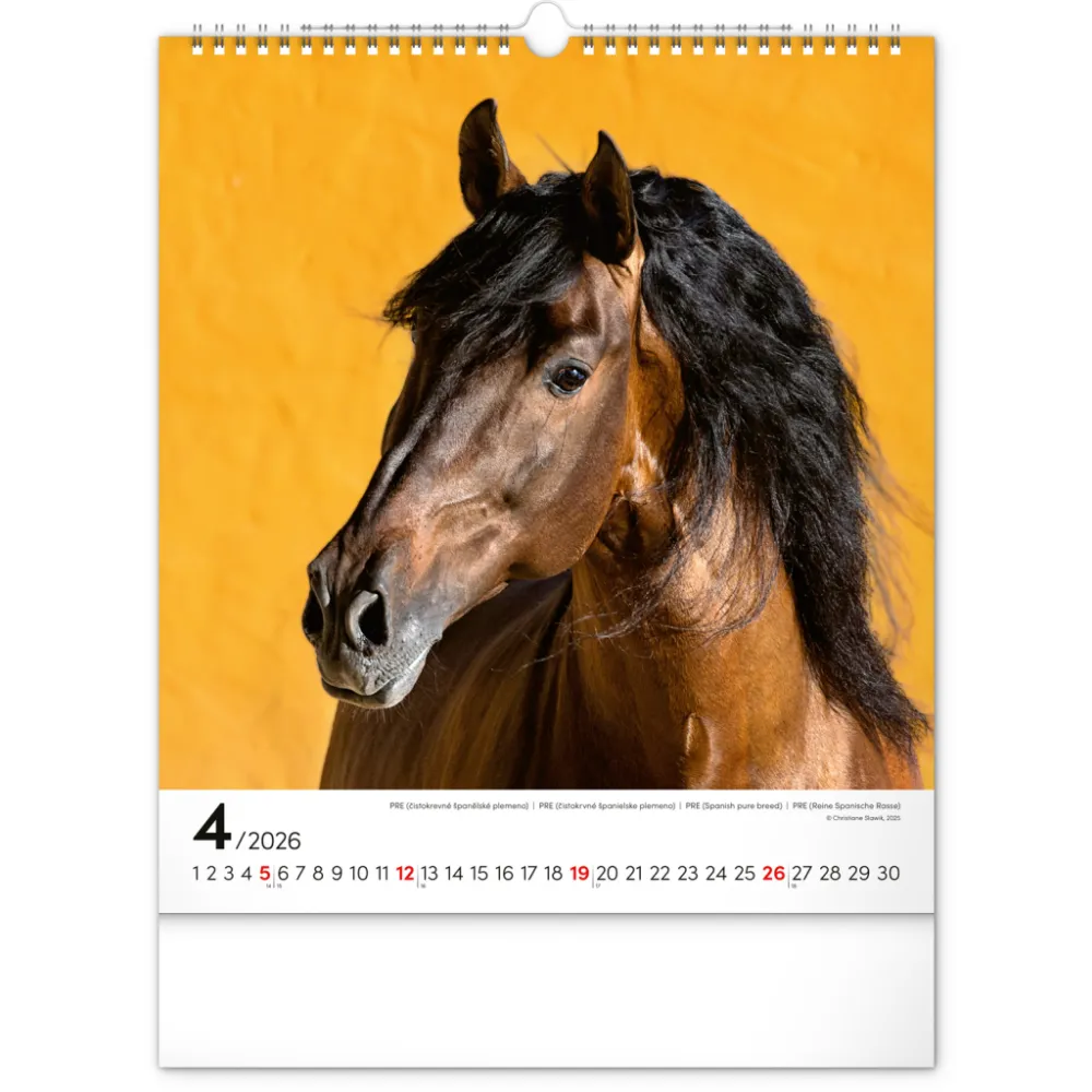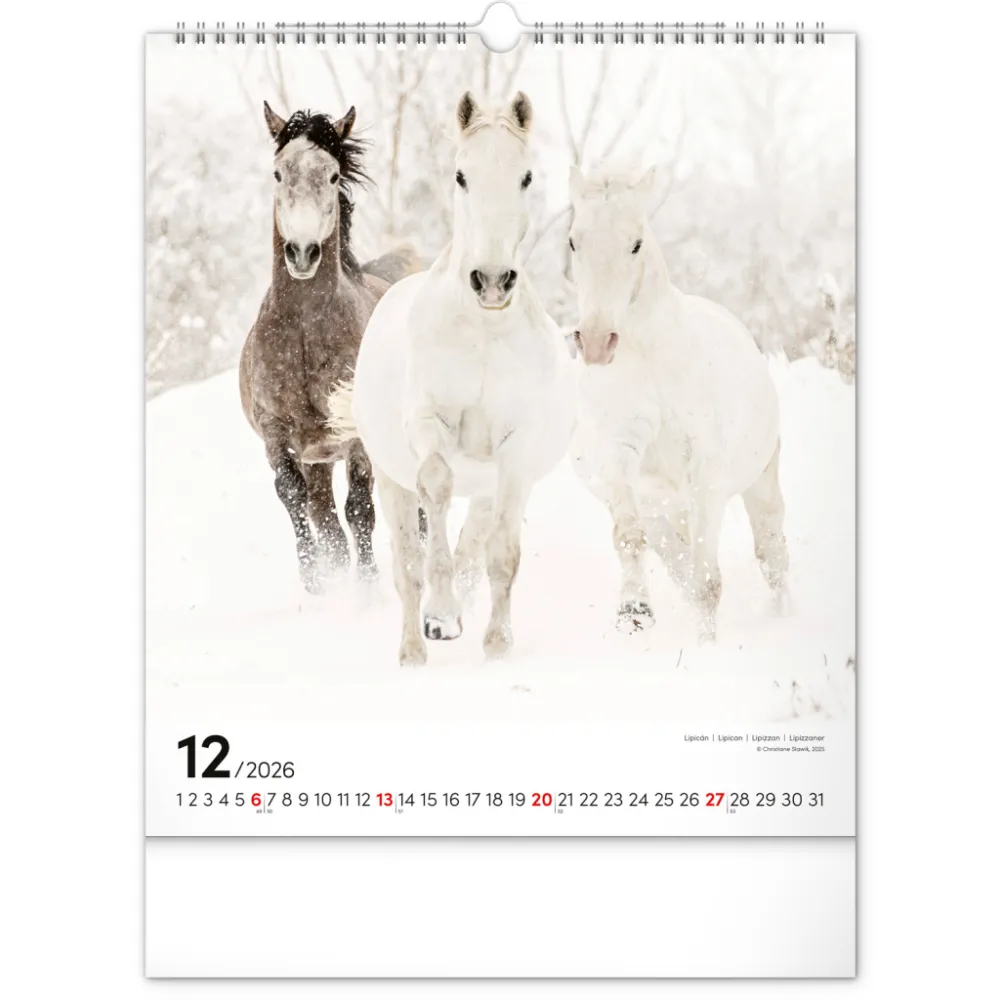 Koně a jejich ušlechtilá krása na originálních snímcích známé německé fotografky Christiane Slawik. Fotografie jsou doplněny univerzálním kalendáriem se zvýrazněnými nedělemi.