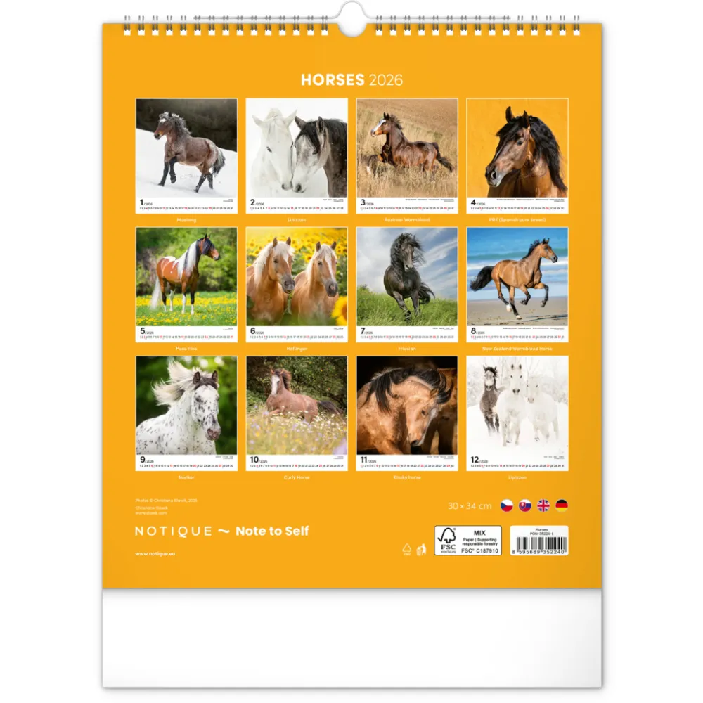 Detailní popis: NOTIQUE Nástěnný kalendář Koně 2026, 30 x 34 cm