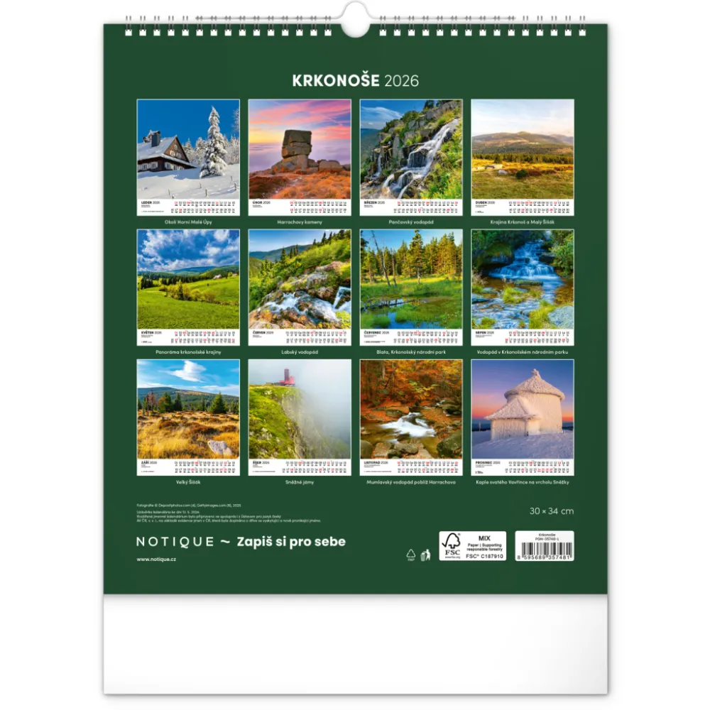 Produkt: NOTIQUE Nástěnný kalendář Krkonoše 2026, 30 x 34 cm je zařazen v těchto kategoriích