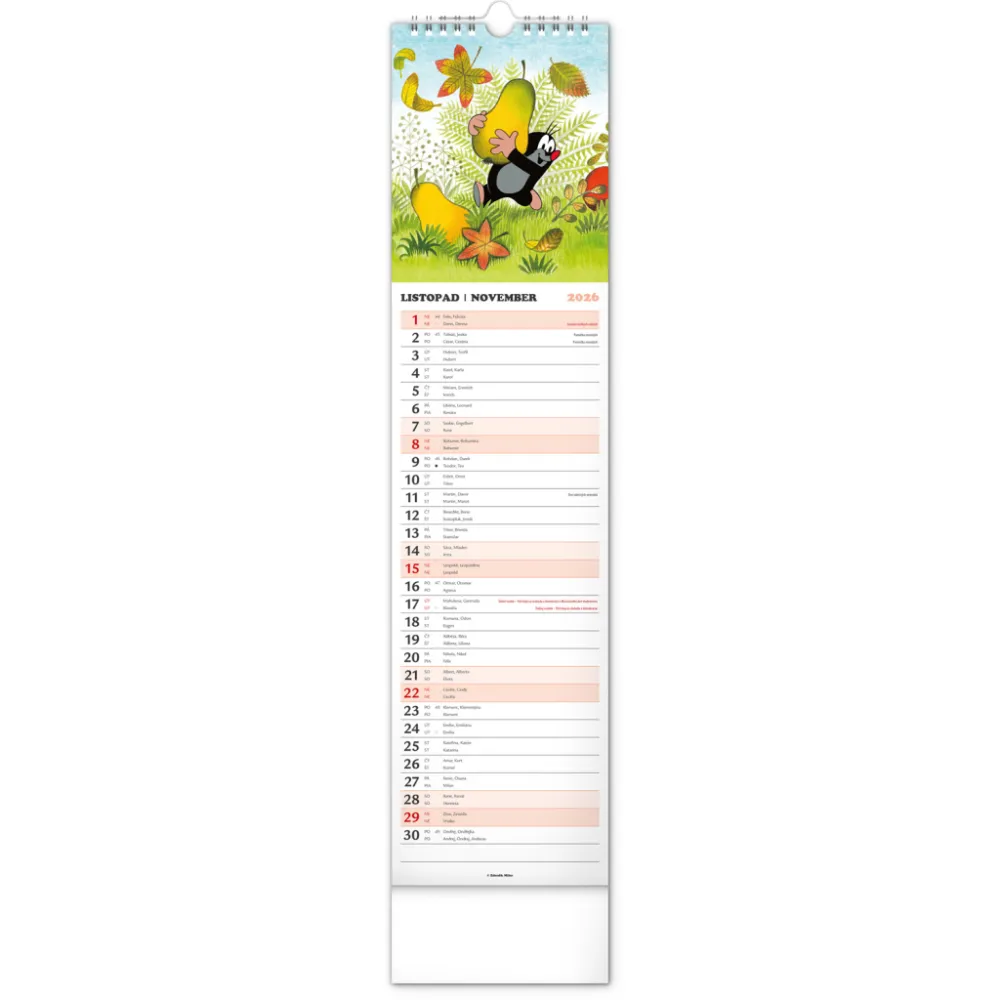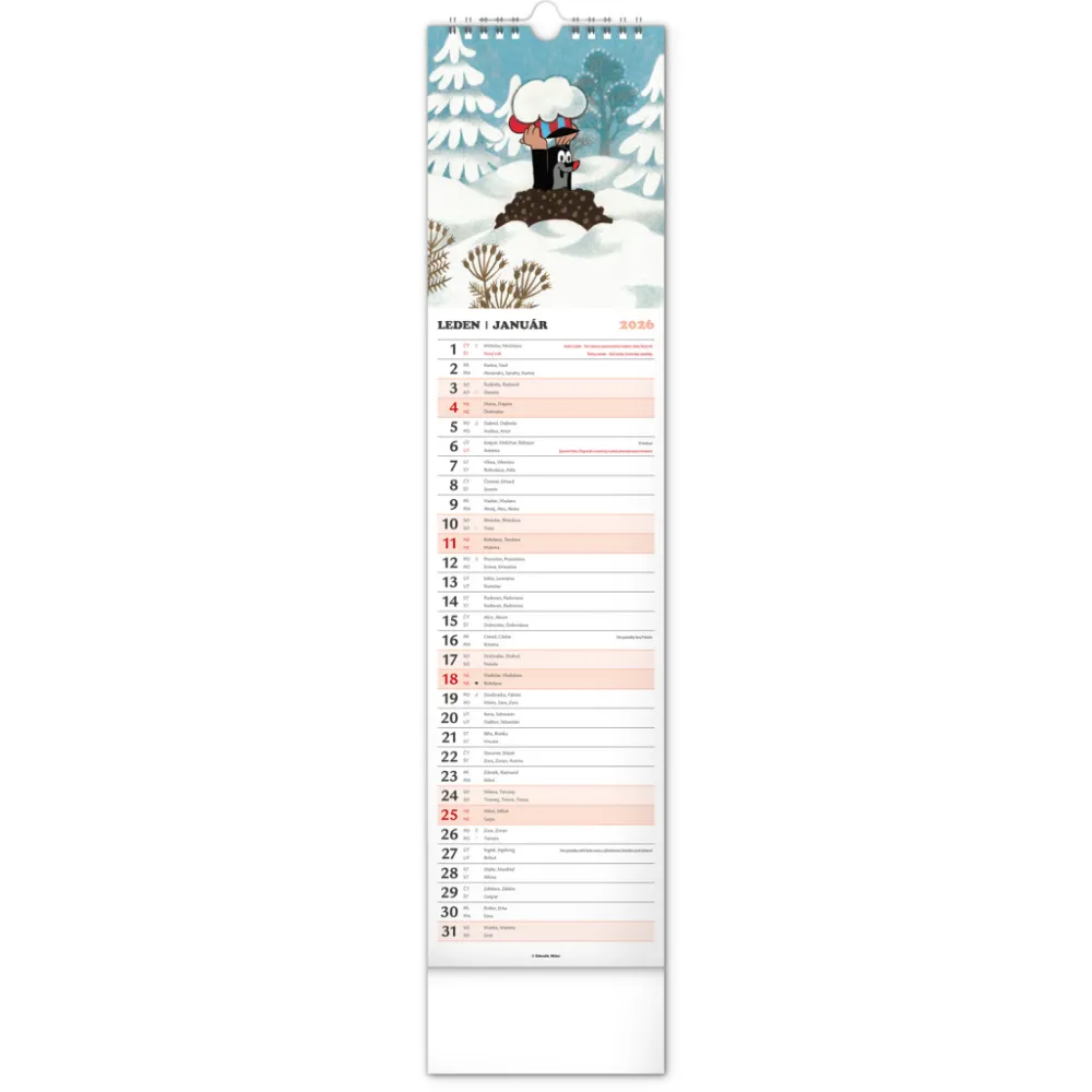 NOTIQUE Nástěnný kalendář Krteček – Krtko 2026, 12 x 48 cm