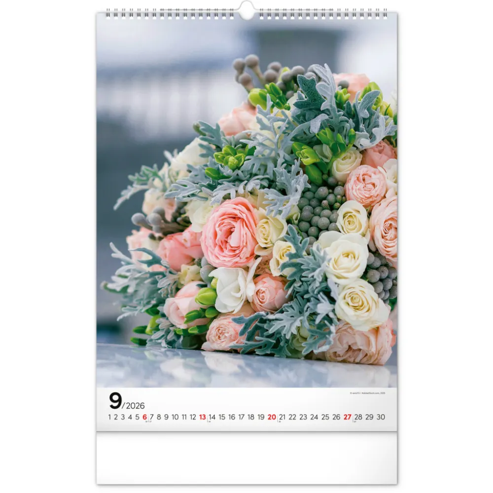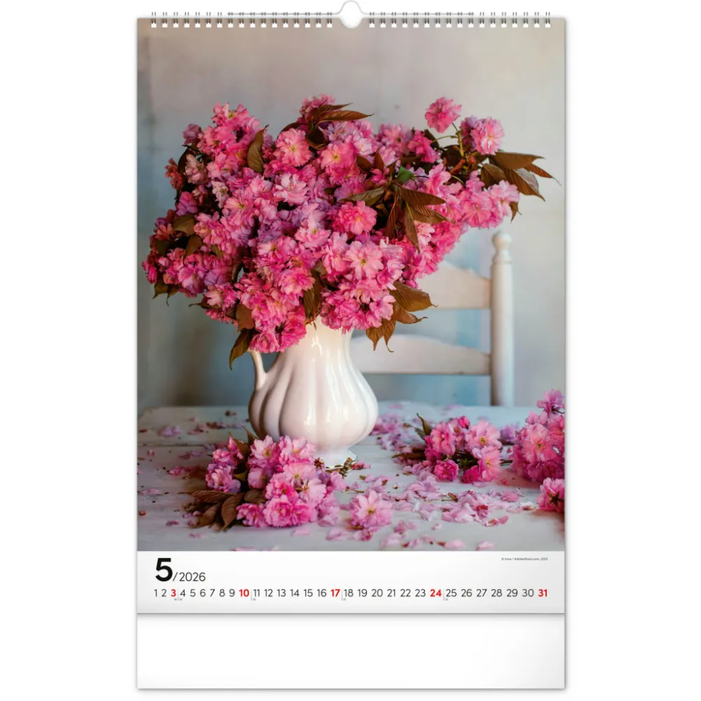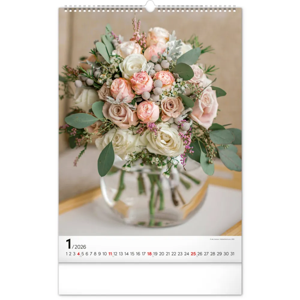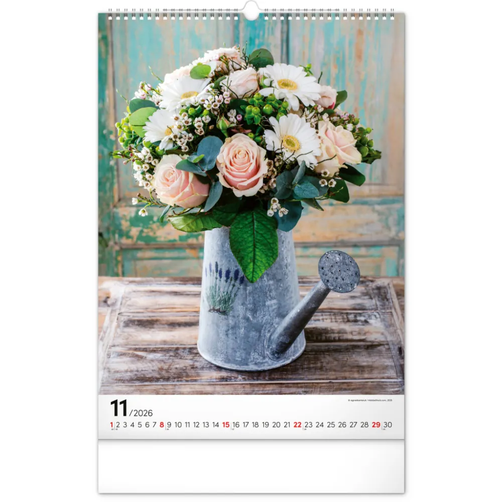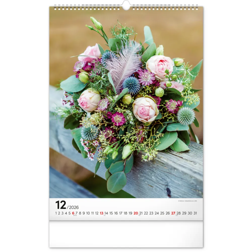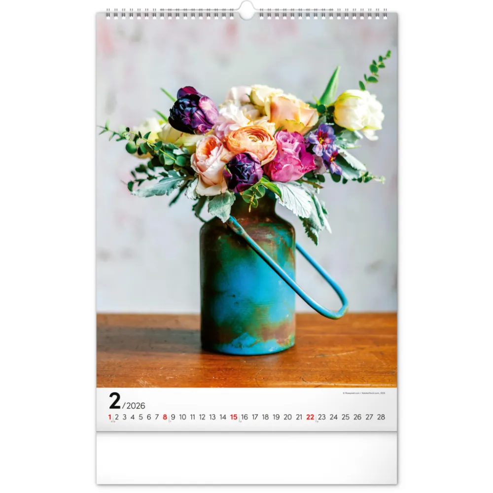 Originálně naaranžované kytice z čerstvých živých květů v nástěnném kalendáři s univerzálním kalendáriem. Potěšte se pohledem na fotografie pestrých a nikdy nevadnoucích květů bez ohledu na roční dobu.