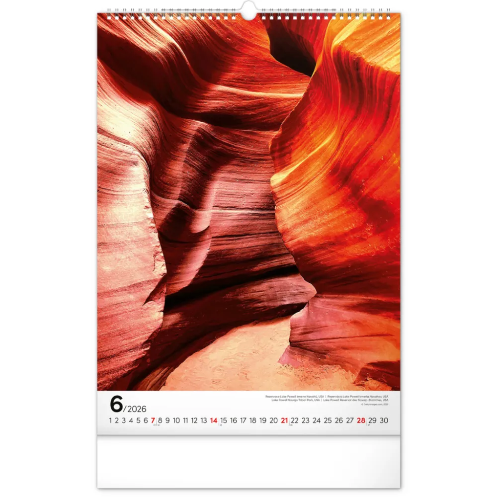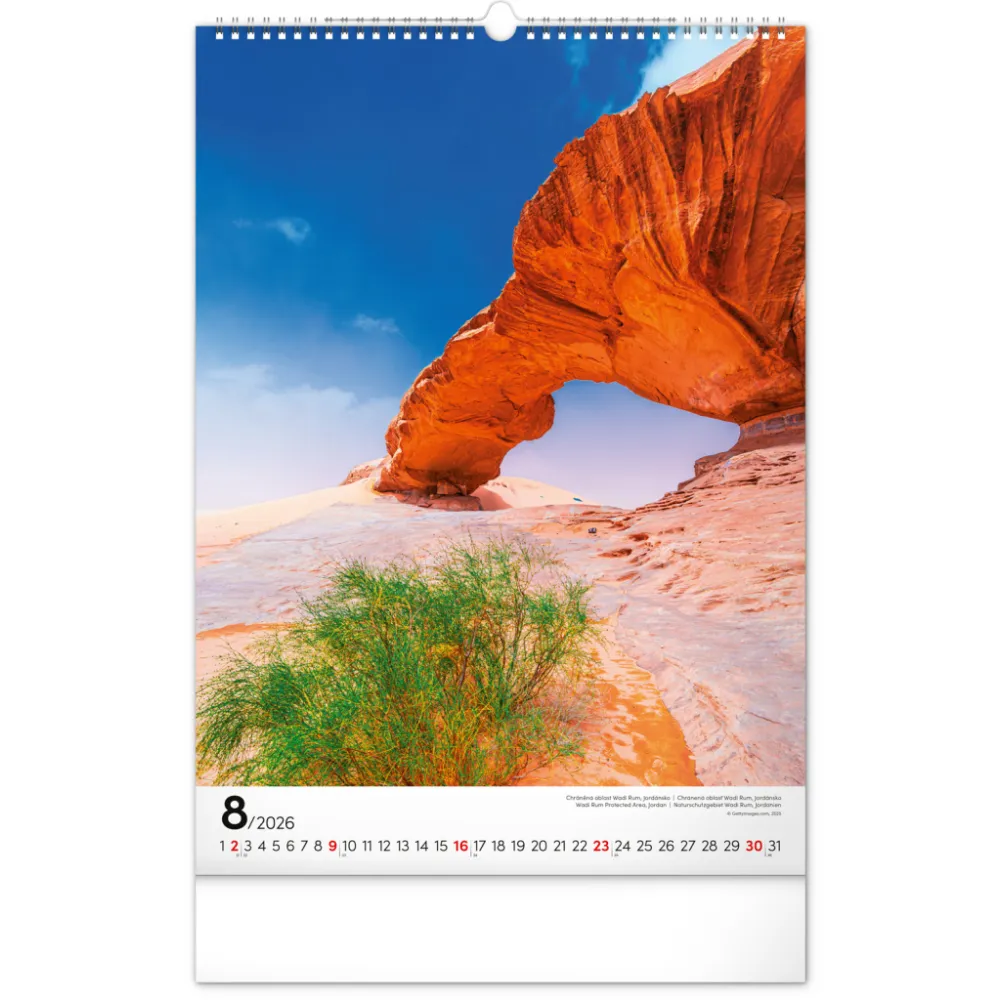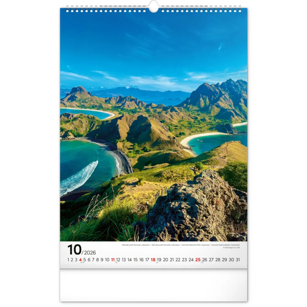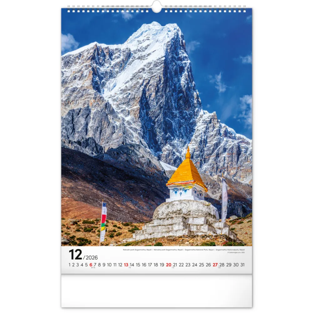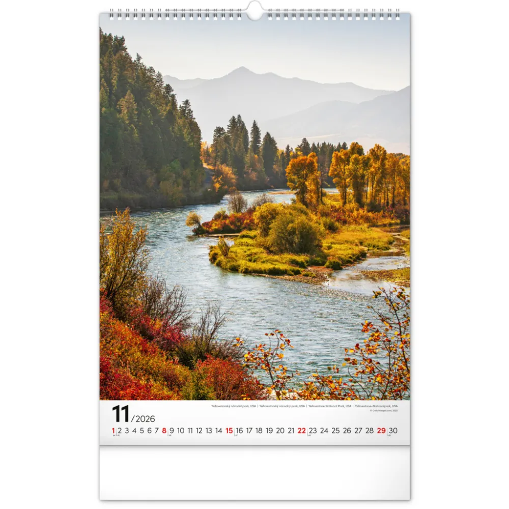 Objevte krásu světových národních parků během celého roku. Kalendář s dechberoucími fotografiemi přírody v oblíbeném výškovém formátu kalendáře.